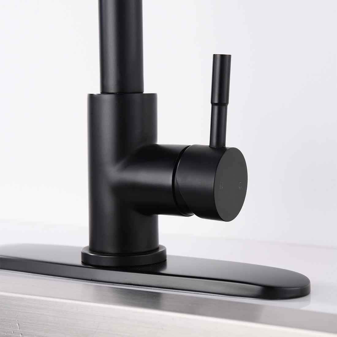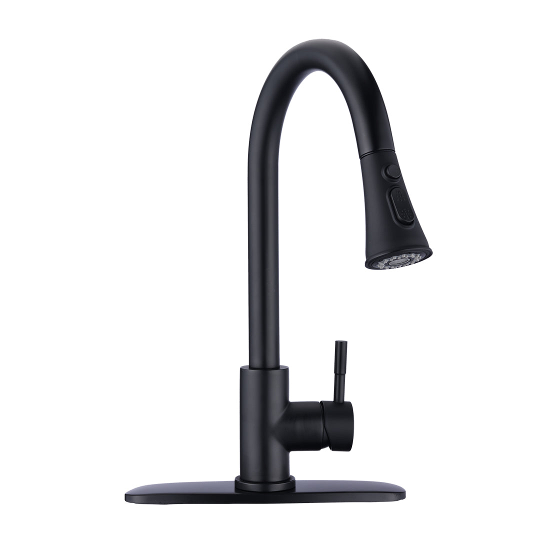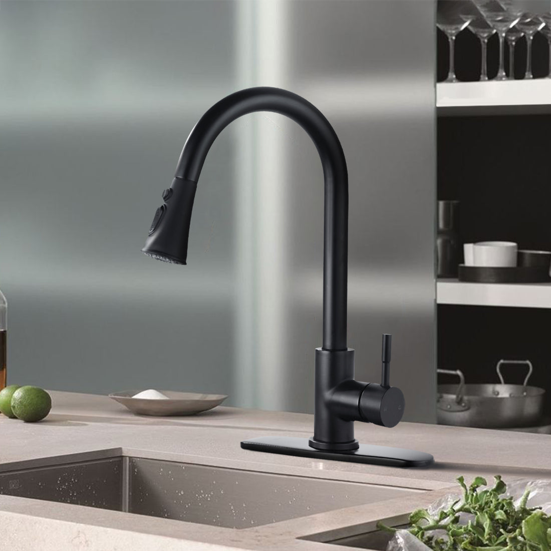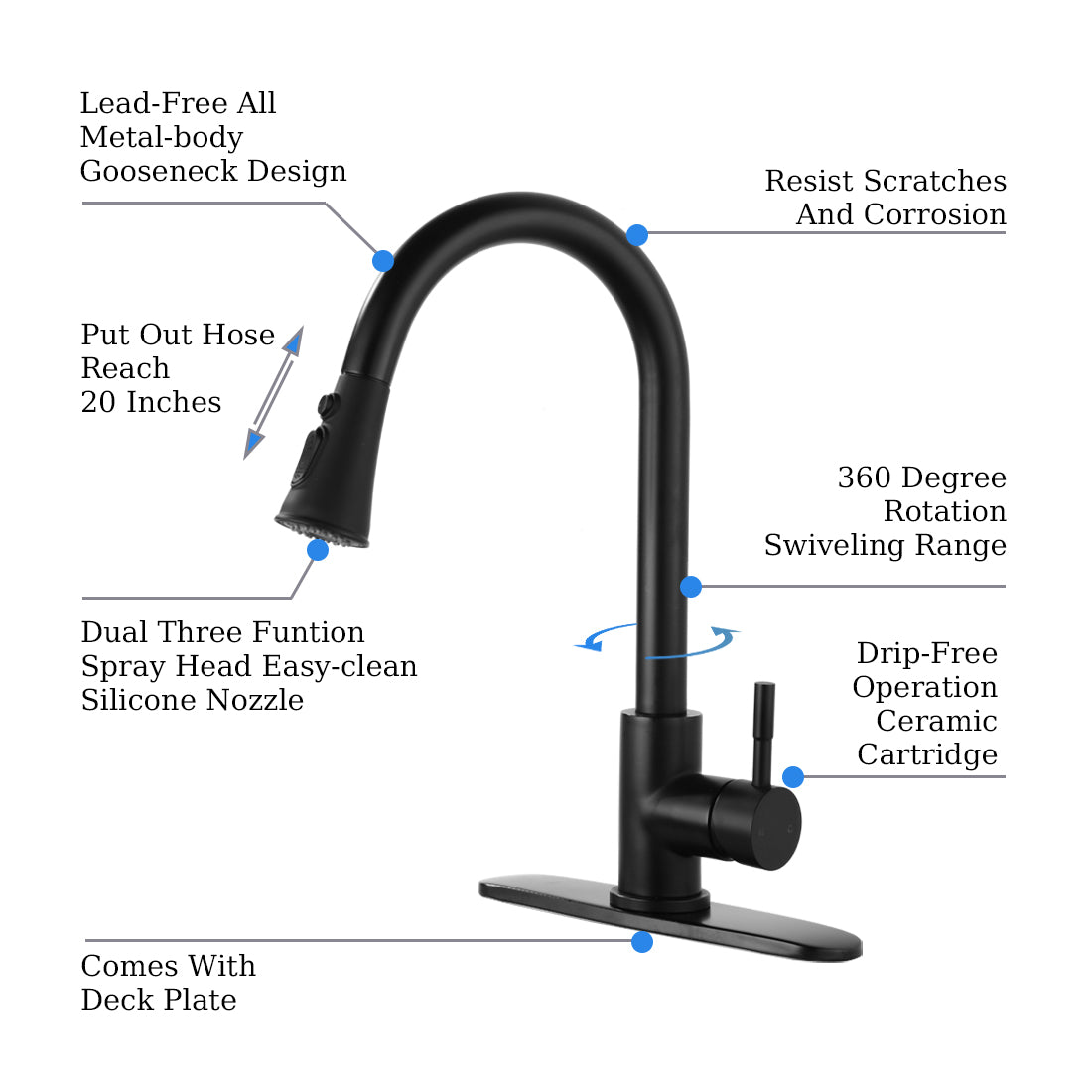 Black Single Handle Pull Down Sprayer Kitchen Faucet with Deck Plate
