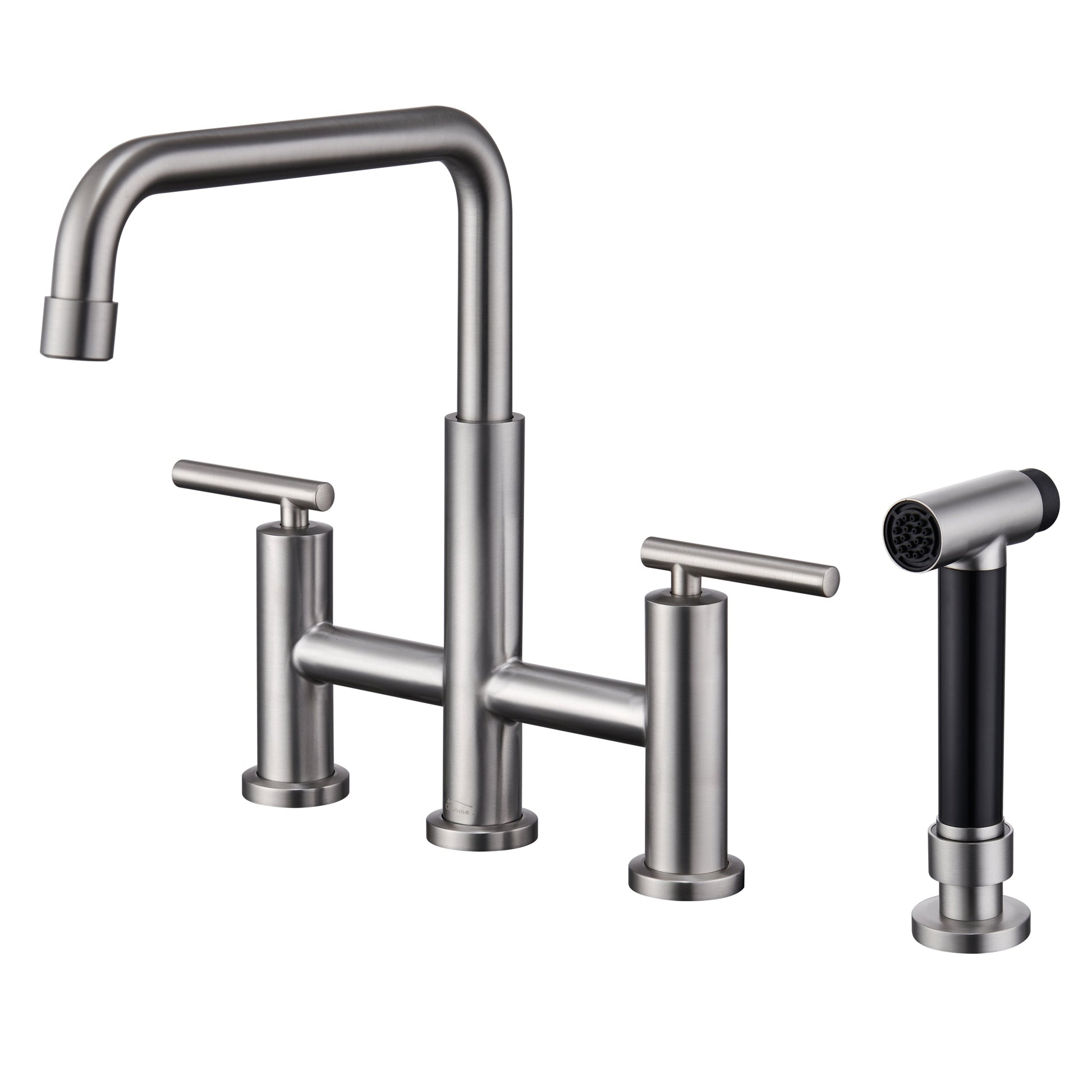 Bridge Kitchen Faucet with Side Sprayer Brushed Nickel Kitchen Faucet 8 Inch 4 Hole Double Handle Vintage Faucet Widespread Stainless Steel Sink Faucet