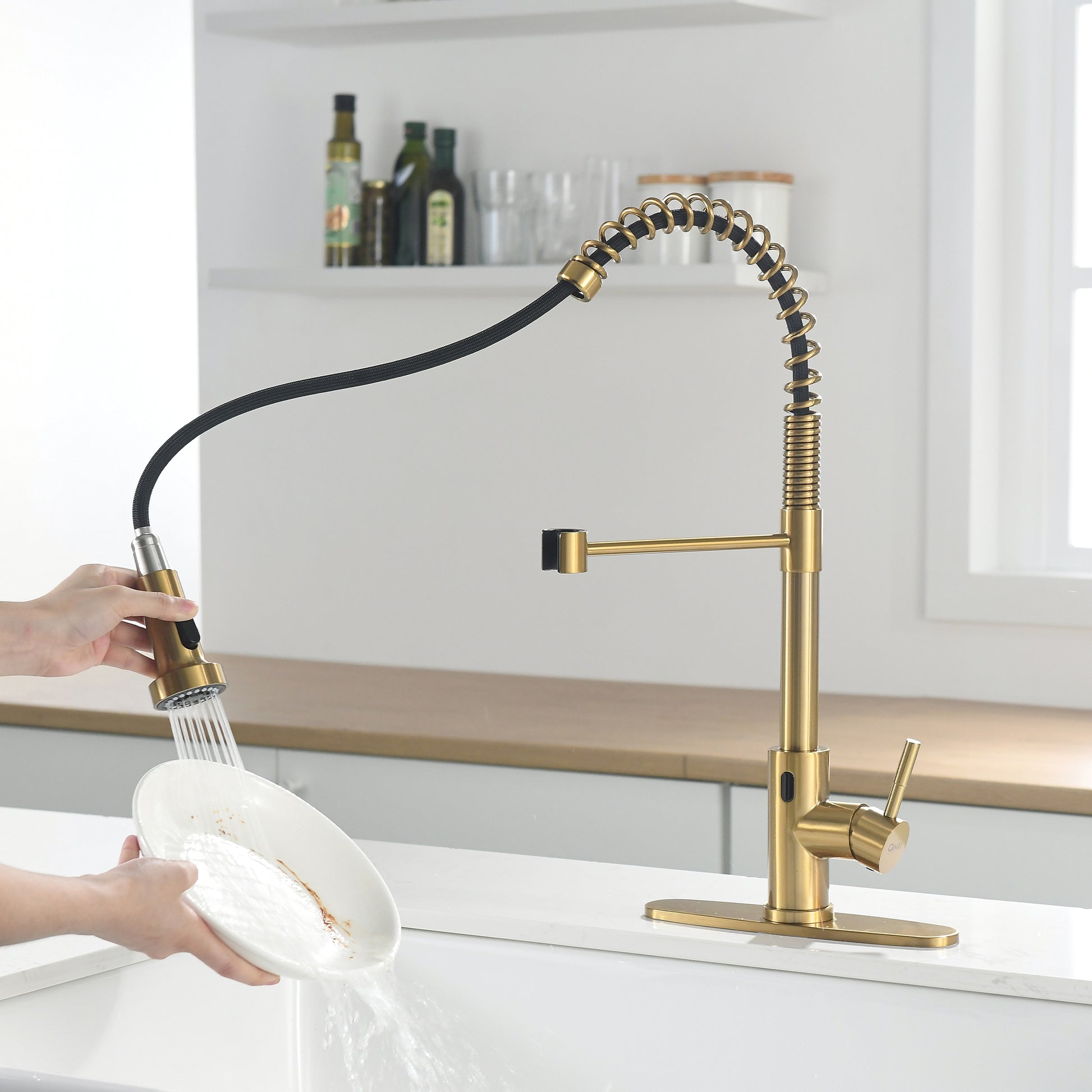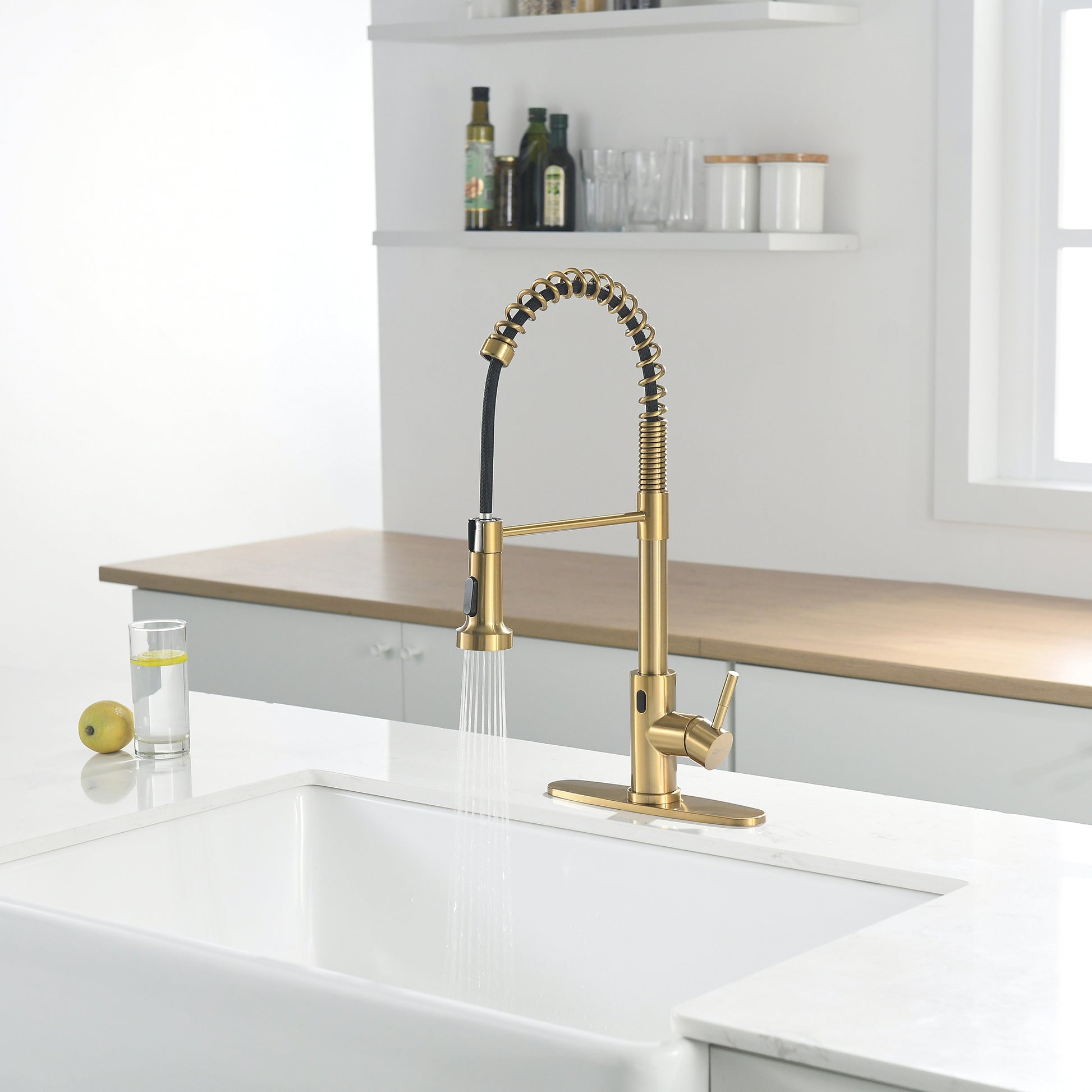 Brushed Gold 2 Spray Patterns Single Handle Touchless Pull Down Sprayer Kitchen Faucet with Deckplate Included