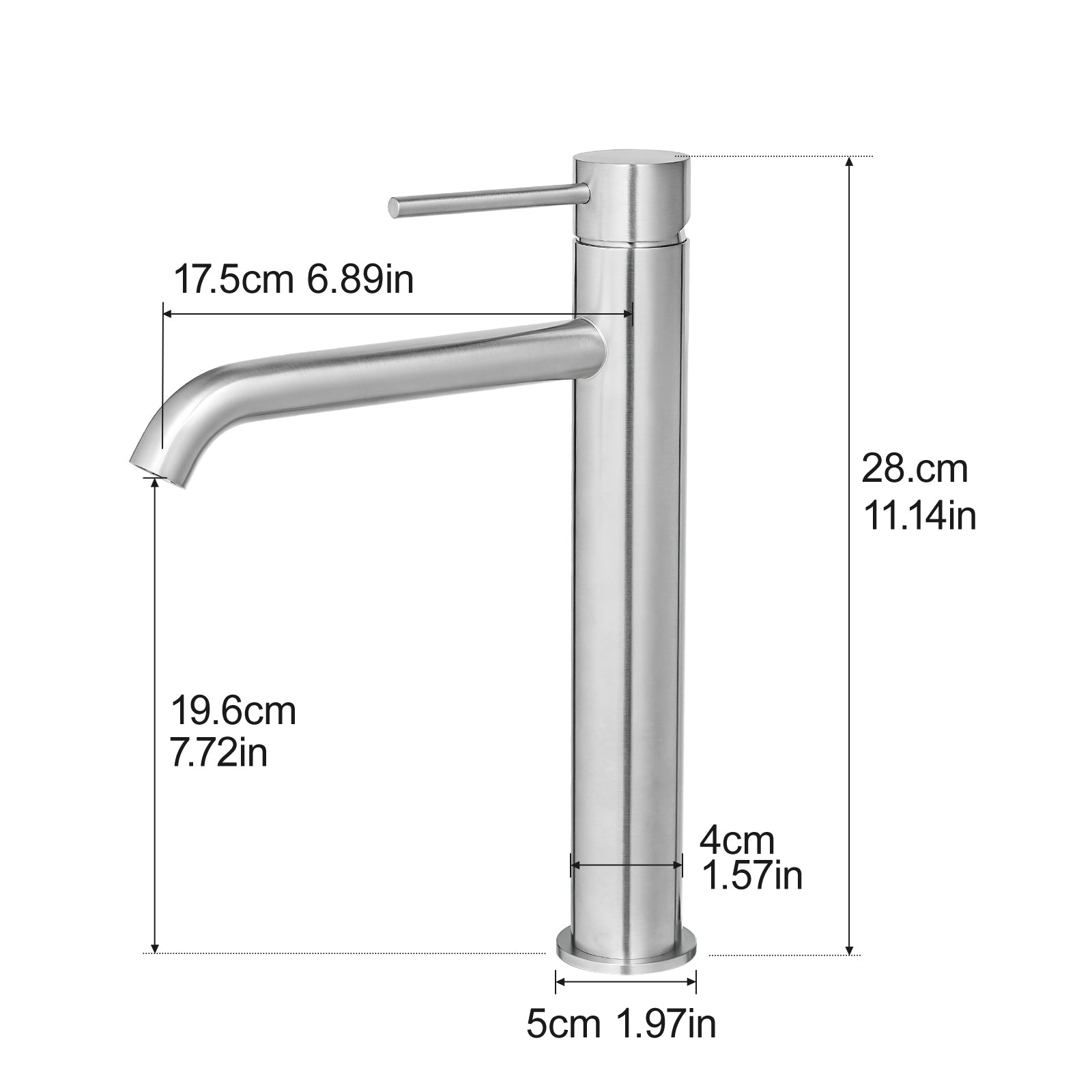 The vessel sink bathroom faucet controls the water flow and water temperature with a single lever. The aerator creates a waterfall effect as water streams directly into the sink. The standard us plumbing 3/8 inch connections make this single-hole easy to install.