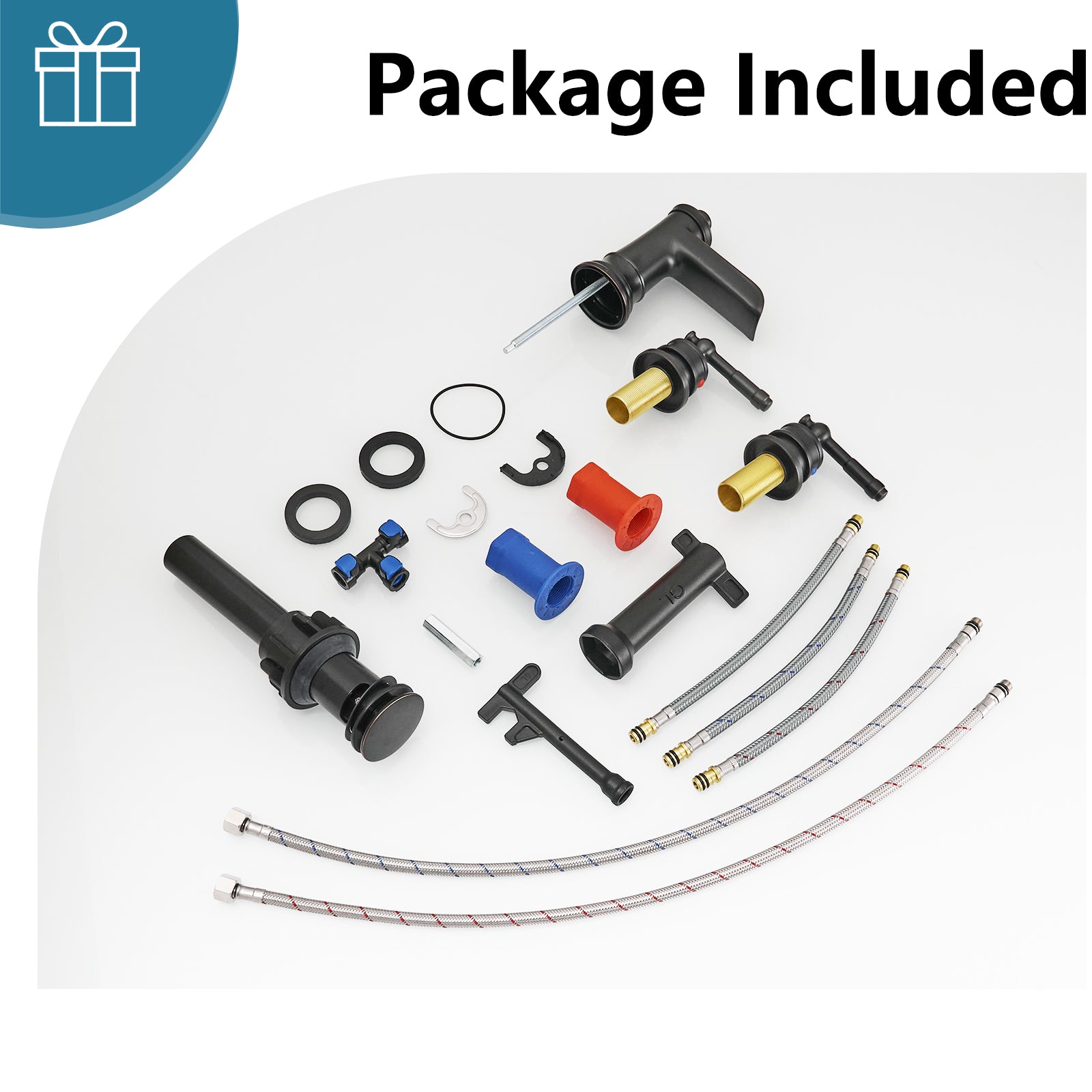 Classic 8 Inch Widespread Double Handle Brass Bathroom Faucet with Pop Up Drain and Water Supply Hoses in Oil Rubbed Bronze