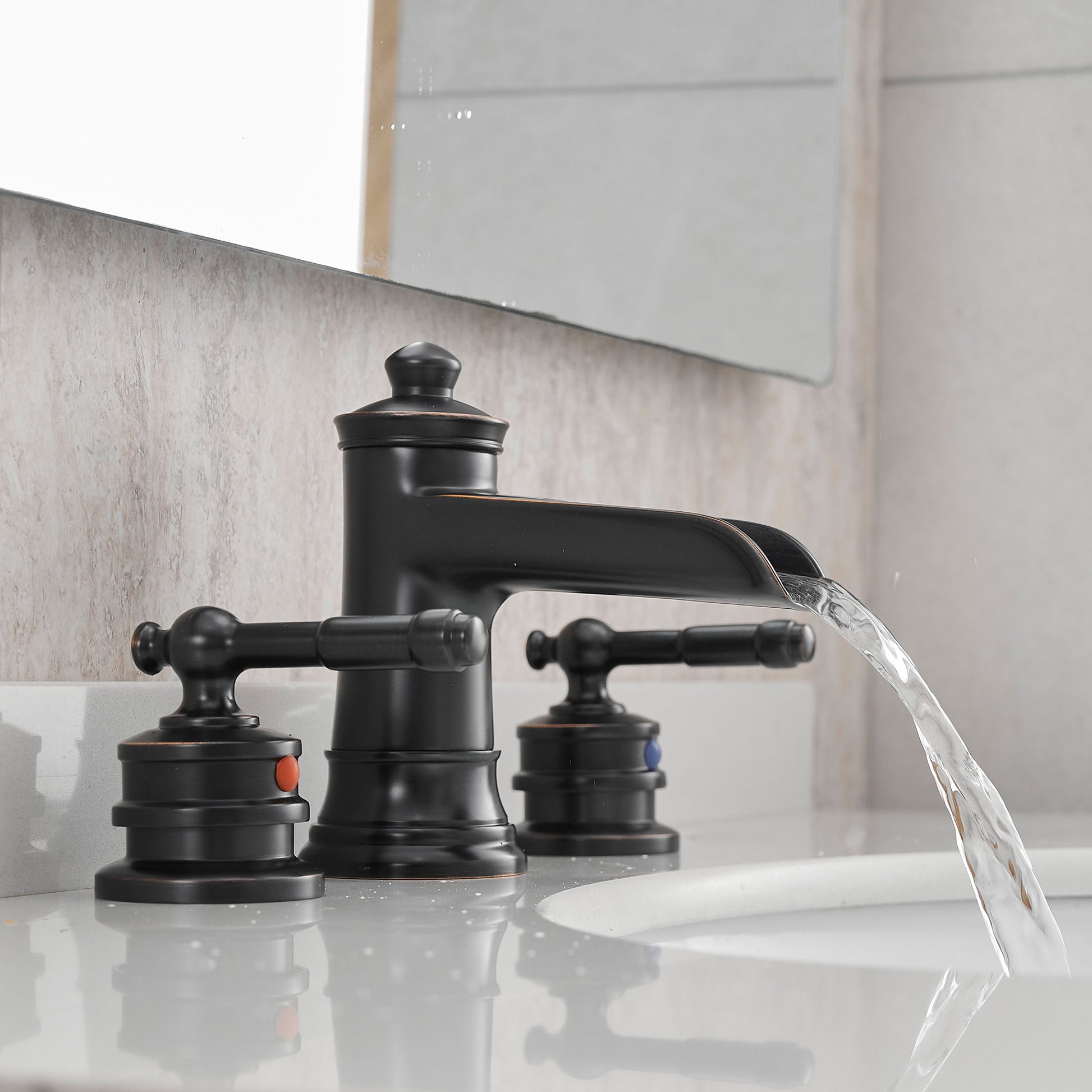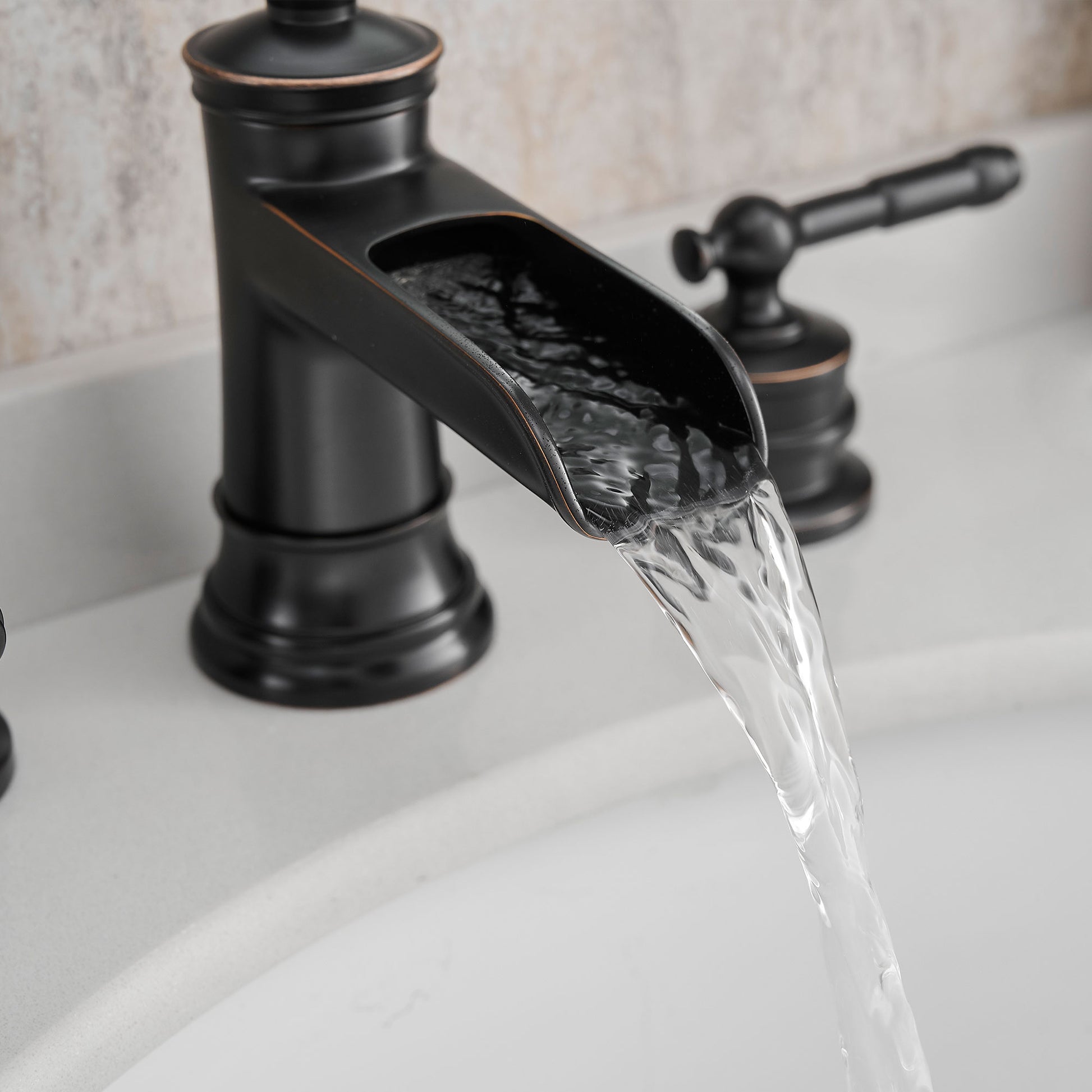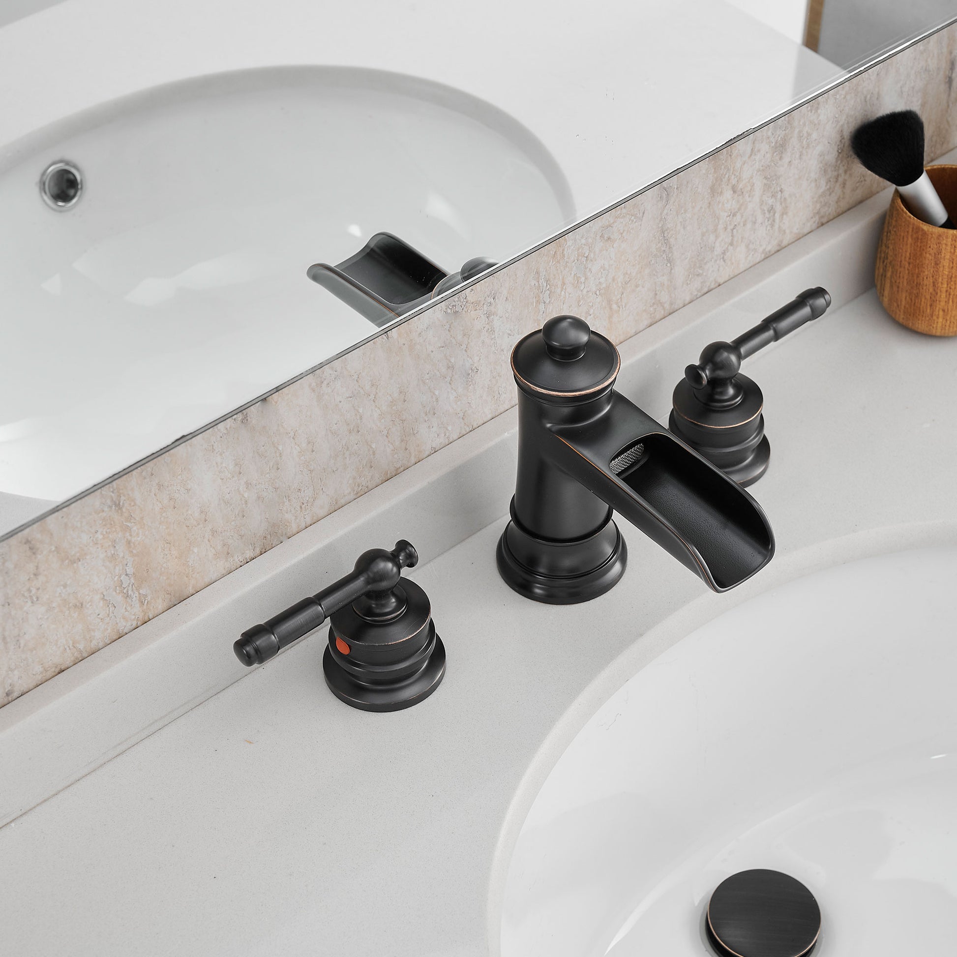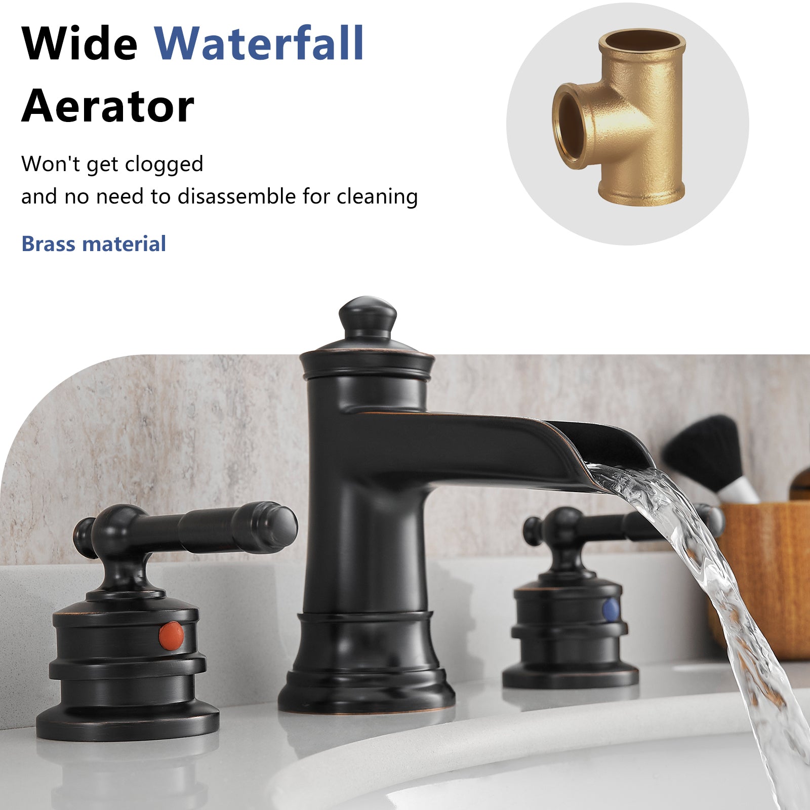 The Classic 8 Inch Widespread Double Handle Brass Bathroom Faucet in Oil Rubbed Bronze ensures utmost safety with CUPC-certified water supply hoses that meet IAPMO standards, and includes a matching pop-up drain with a convenient press-seal mechanism for seamless installation. Designed for 3-hole widespread sinks with adjustable 6–16 inch spacing, it features dual handles for precise control of hot and cold water and delivers a steady 1.8 GPM flow. Constructed from solid brass with ceramic disc cartridges tested for 500,000 open/close cycles, this faucet guarantees long-lasting, drip-free performance. Available in brushed nickel, matte black, oil-rubbed bronze, or brushed gold finishes, it includes professional installation instructions for a 30-minute setup, with after-sales support within 24 hours.