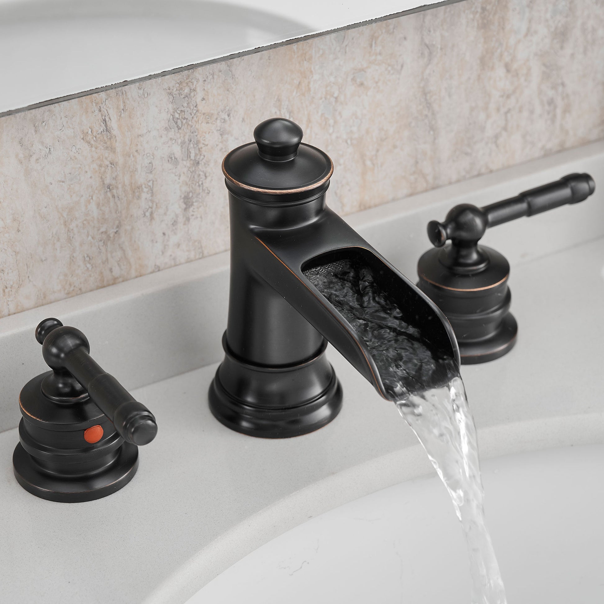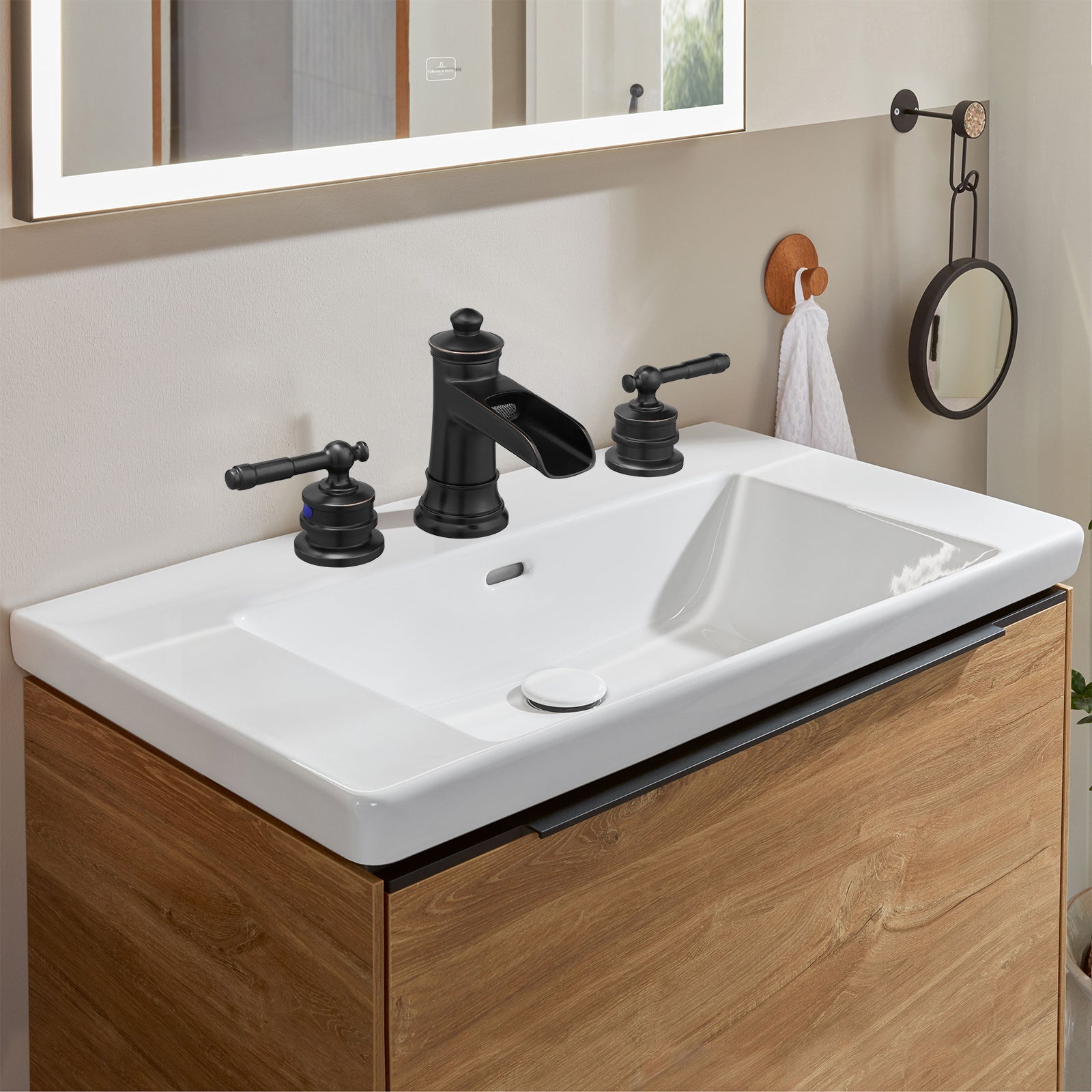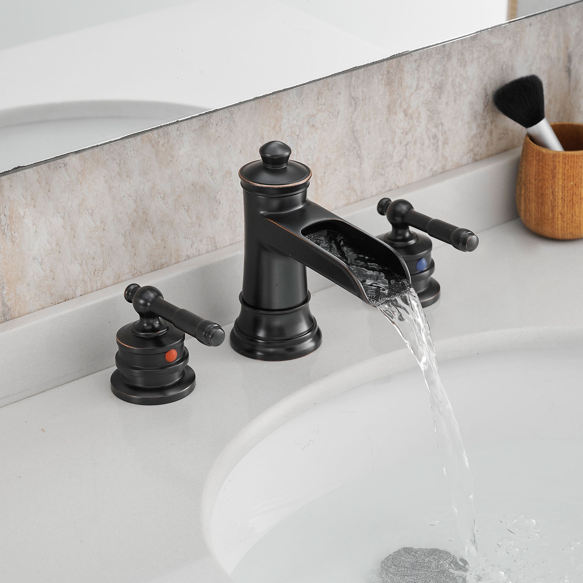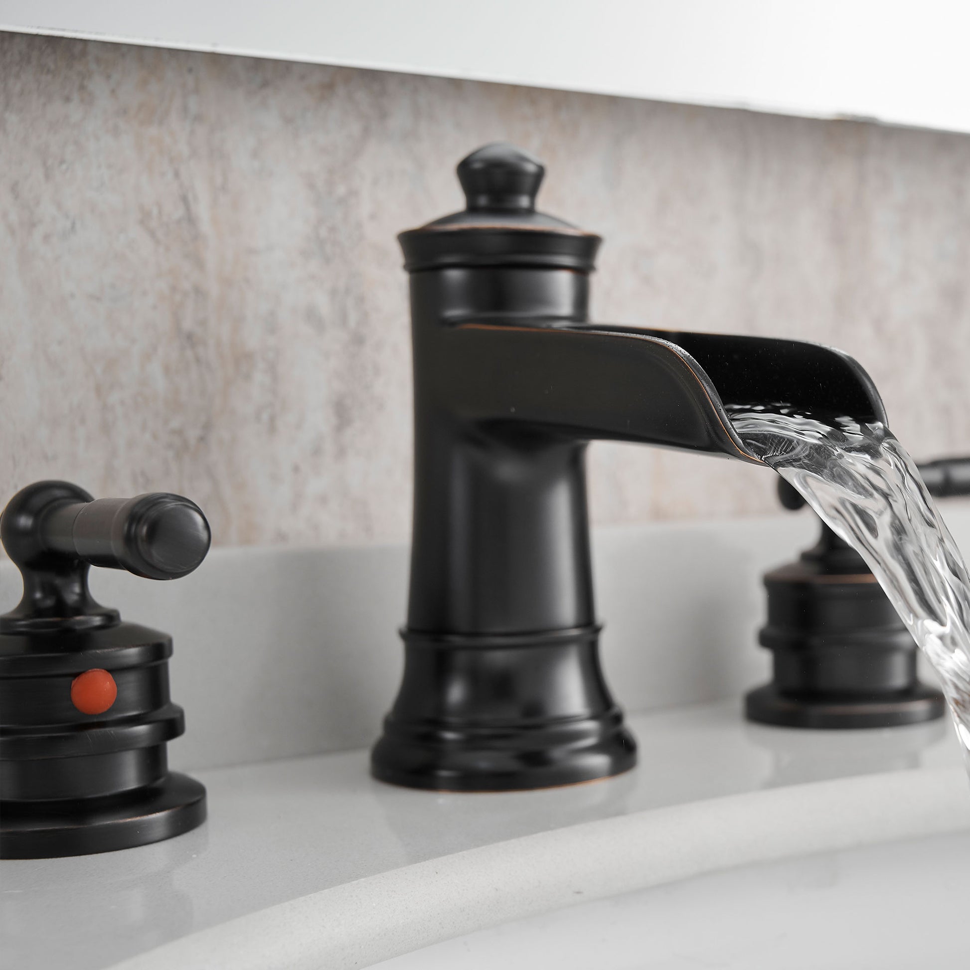 The Classic 8 Inch Widespread Double Handle Brass Bathroom Faucet in Oil Rubbed Bronze ensures utmost safety with CUPC-certified water supply hoses that meet IAPMO standards, and includes a matching pop-up drain with a convenient press-seal mechanism for seamless installation. Designed for 3-hole widespread sinks with adjustable 6–16 inch spacing, it features dual handles for precise control of hot and cold water and delivers a steady 1.8 GPM flow. Constructed from solid brass with ceramic disc cartridges tested for 500,000 open/close cycles, this faucet guarantees long-lasting, drip-free performance. Available in brushed nickel, matte black, oil-rubbed bronze, or brushed gold finishes, it includes professional installation instructions for a 30-minute setup, with after-sales support within 24 hours.