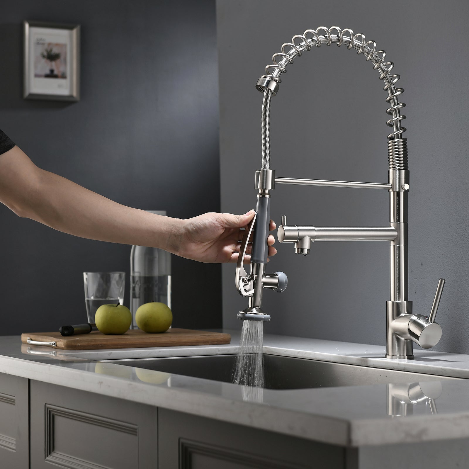 Give your kitchen a quick modern makeover with spring single handle pull down sprayer faucet