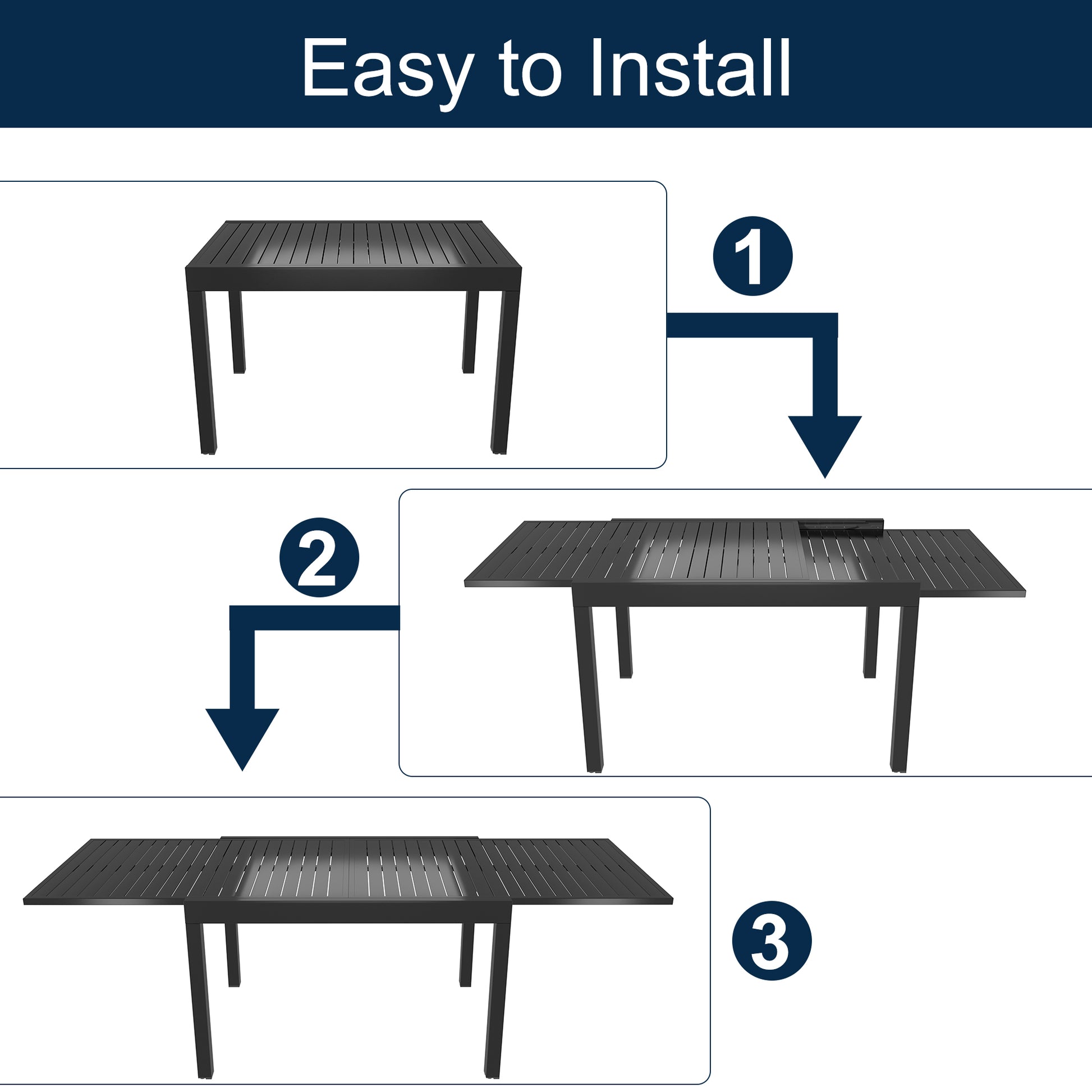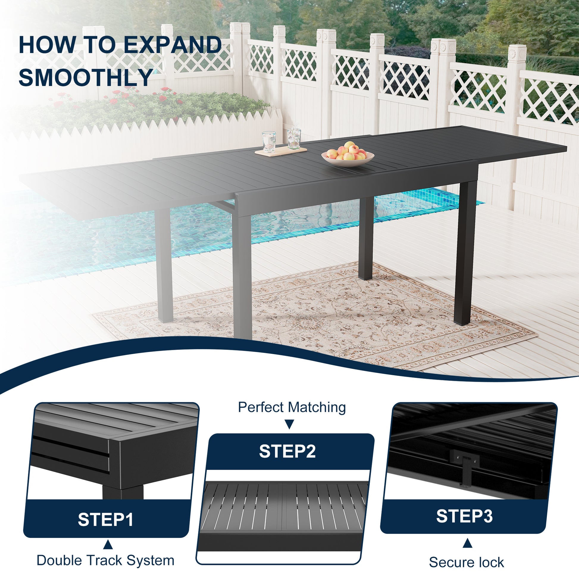 Expandable Patio Dining Table, Metal Aluminum Outdoor Table for Porch Lawn Garden Bistro Rectangular Table