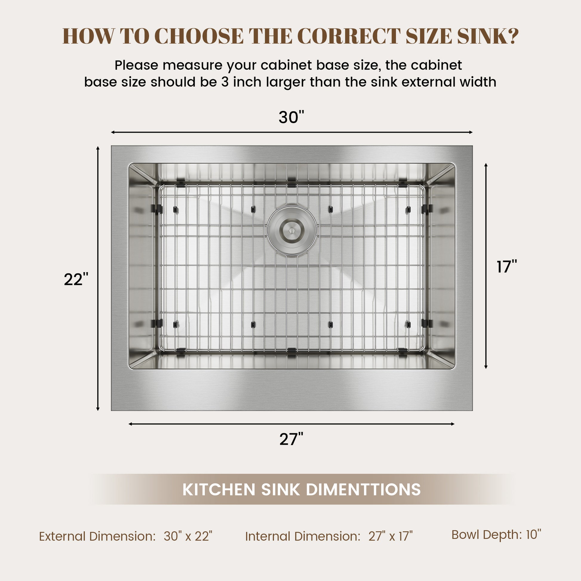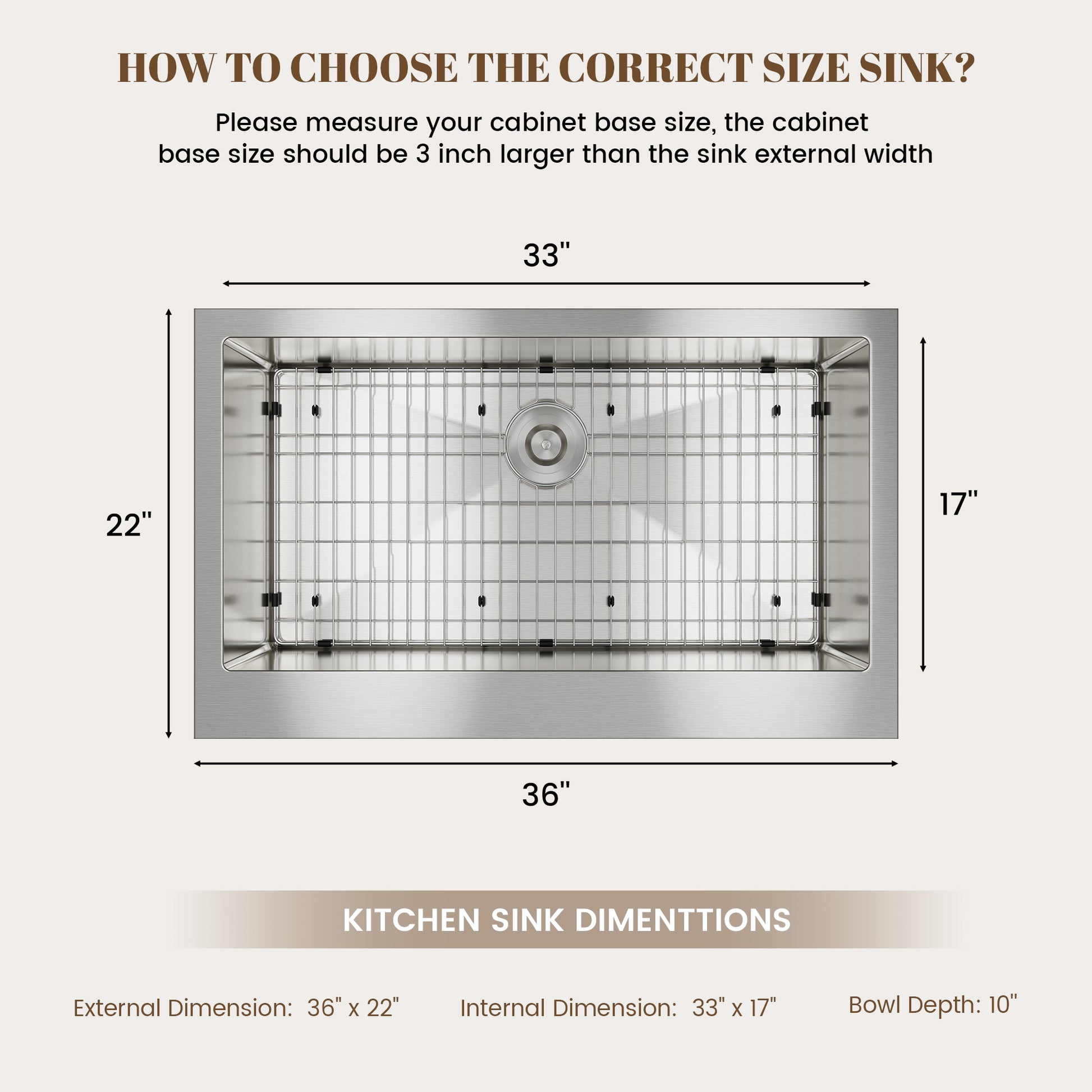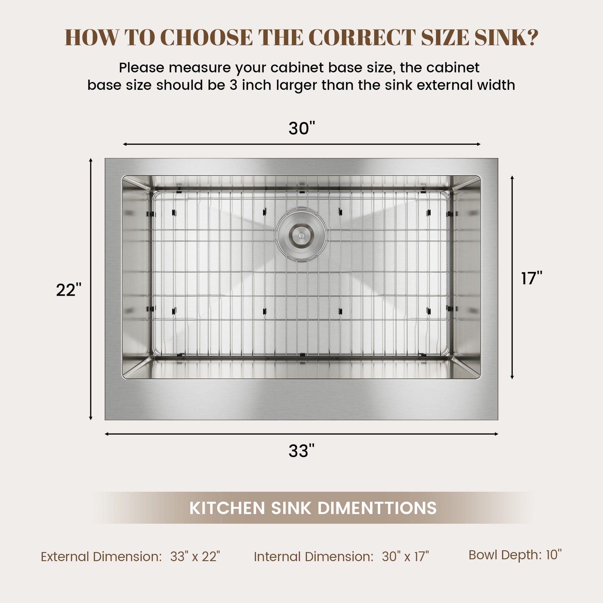 Farmhouse Apron-Front Stainless Steel Kitchen Sink with Bottom Grid and Strainer Basket