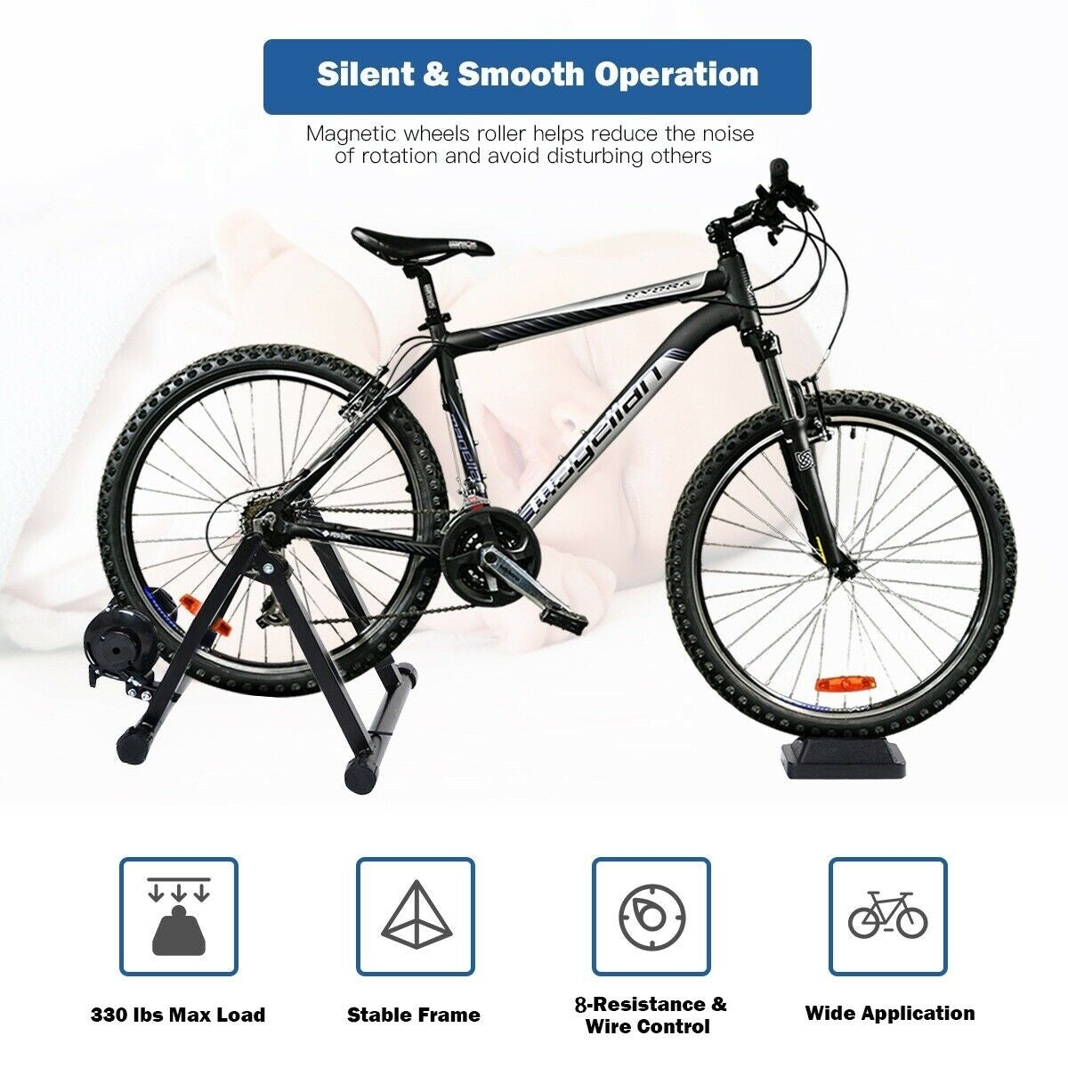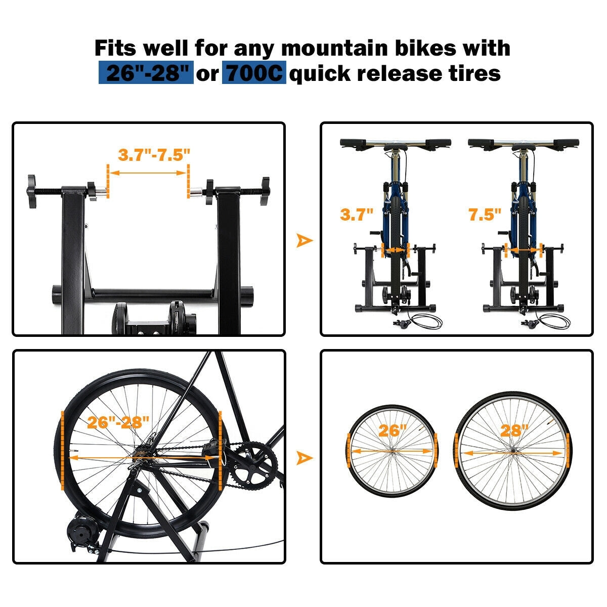 - Quiet operation Folding design easy to carry and storage Fixed device easy to install and remove Fits 26-28 inches or 700C bike wheels with quick release