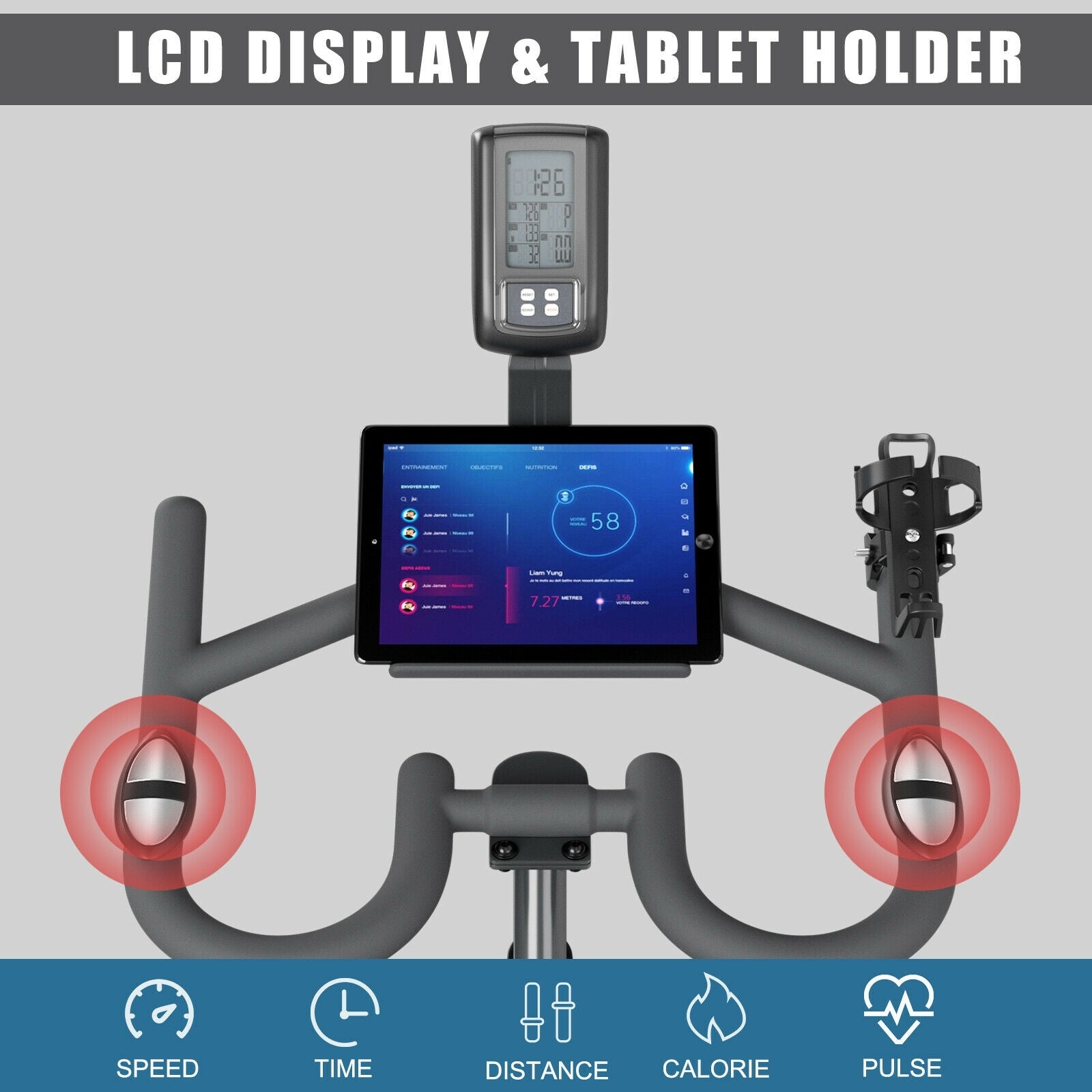 ● LCD Monitor and Tablet Holder: LCD monitor tracks the time, speed, distance, calories burned and pulse while you are cycling, helping to reach the best exercising effect. And the heart rate can be detected and received by both hands on pulse detection. Plus, you can put your phone or books on the tablet holder.