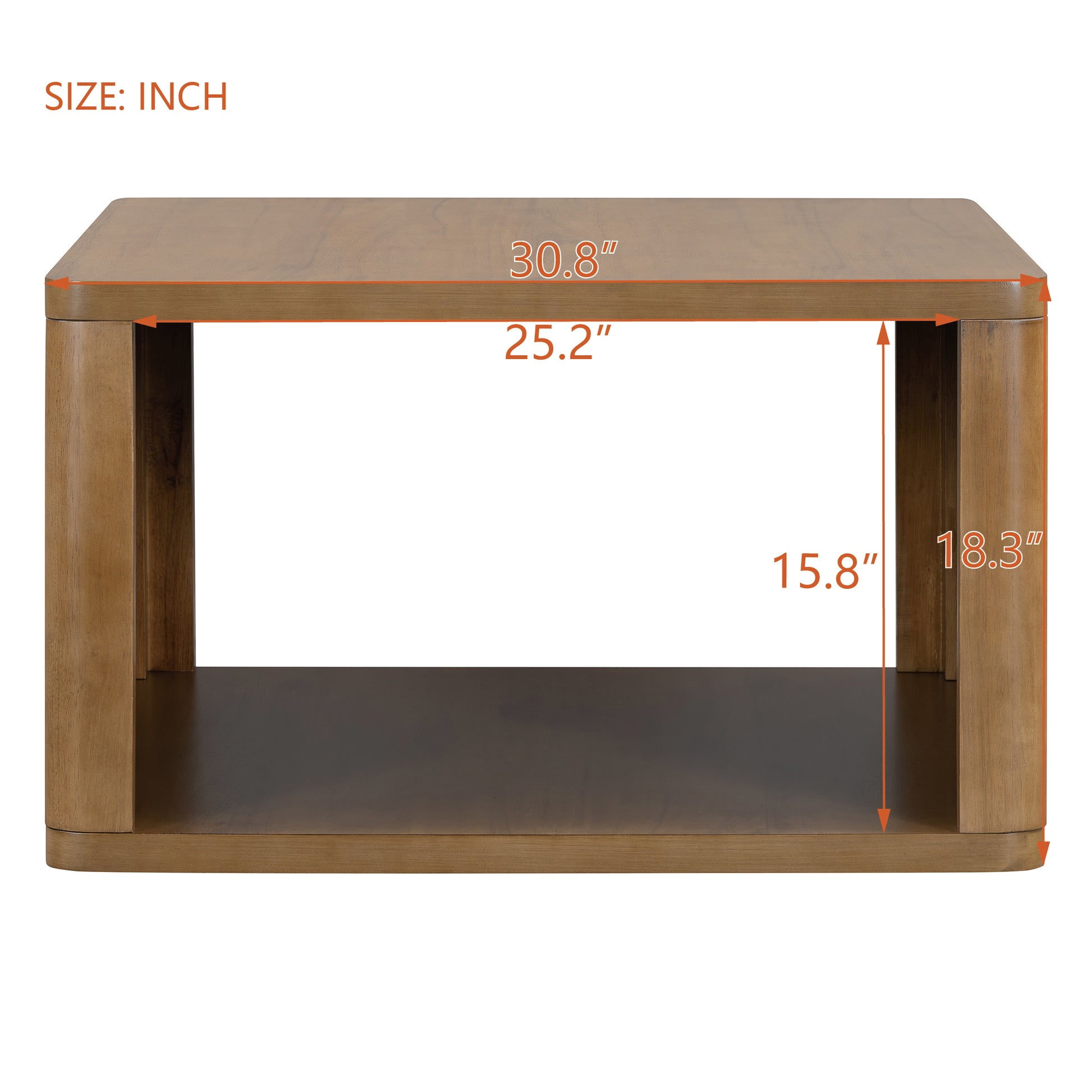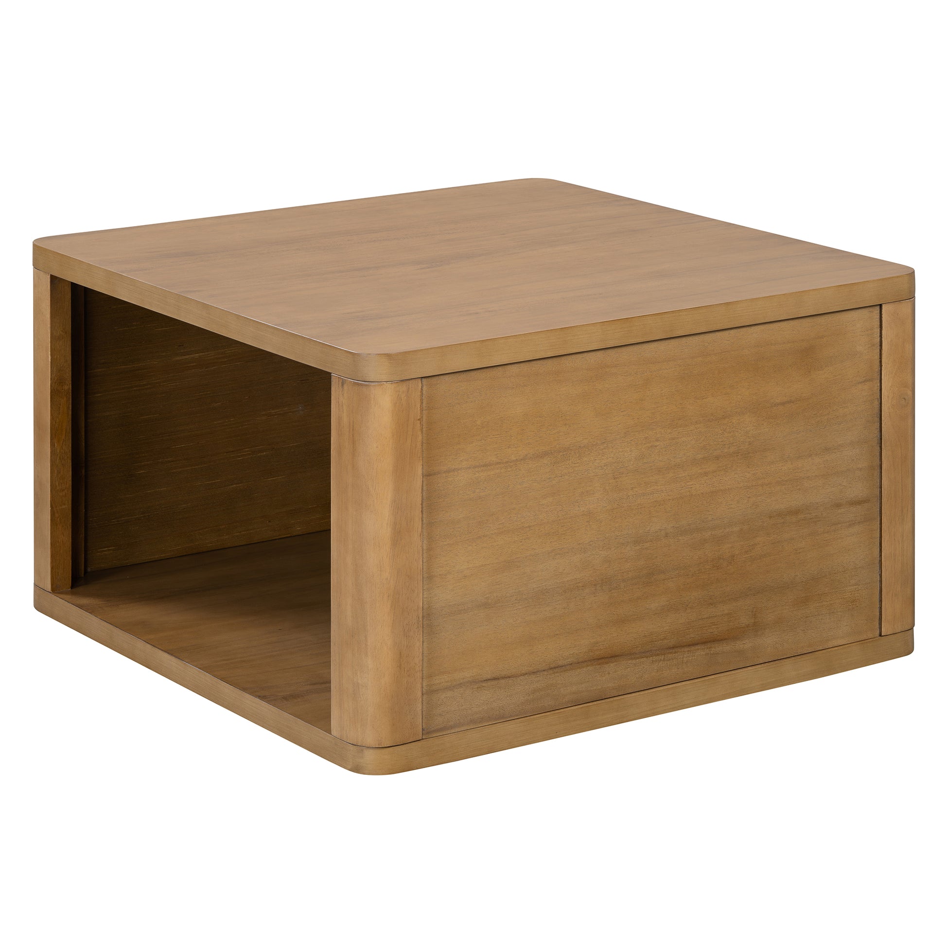 Square Farmhouse Coffee Table with Two Tier Storage and Half Open Compartment Natural 30.8 Inch