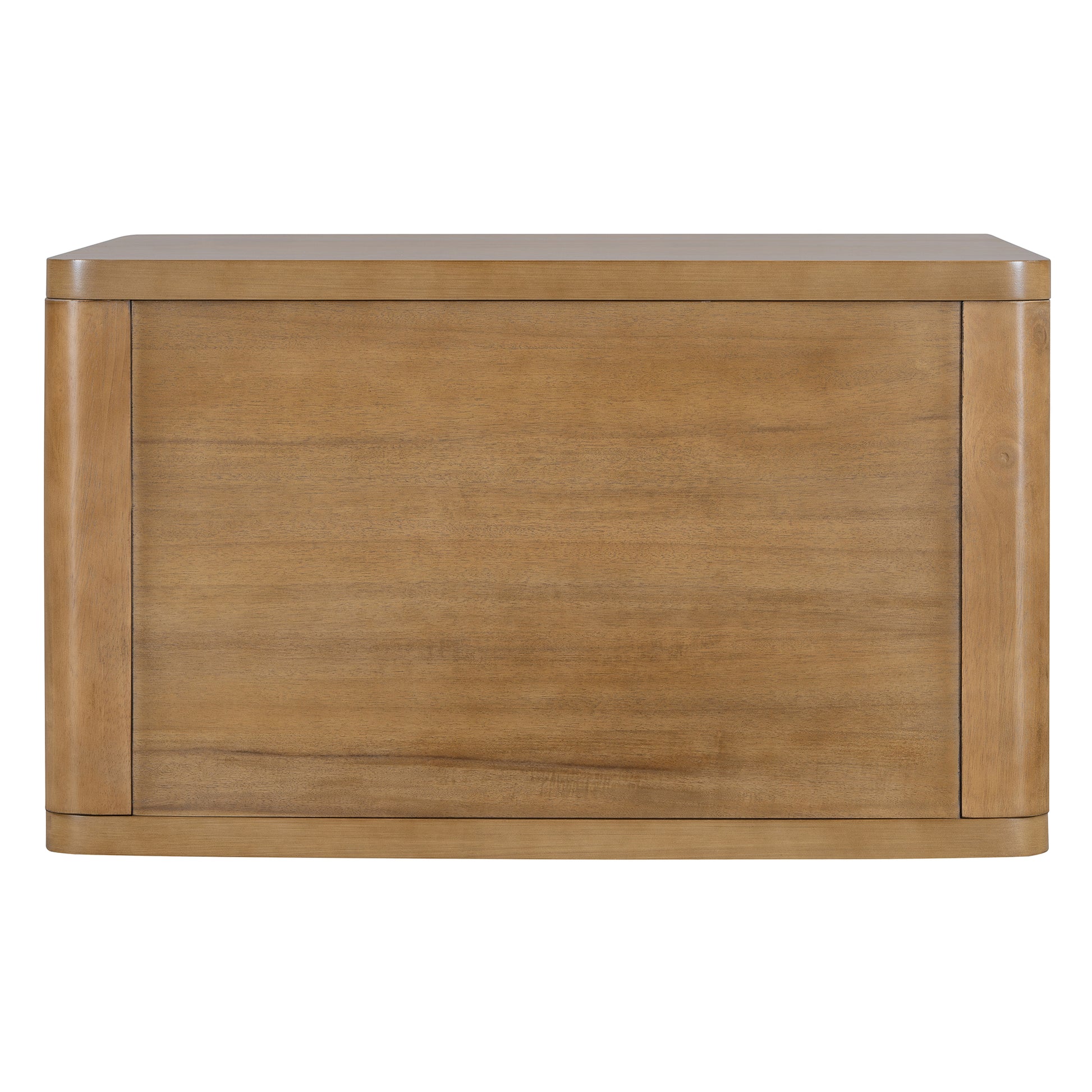 Top surface holds daily items while the open bottom shelf stores books or décor.