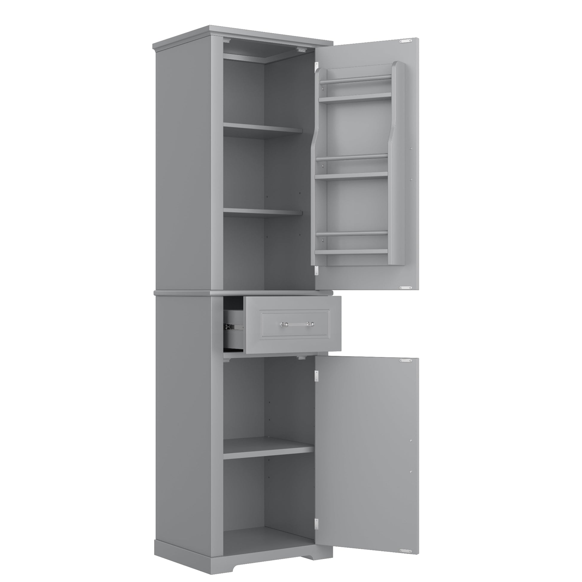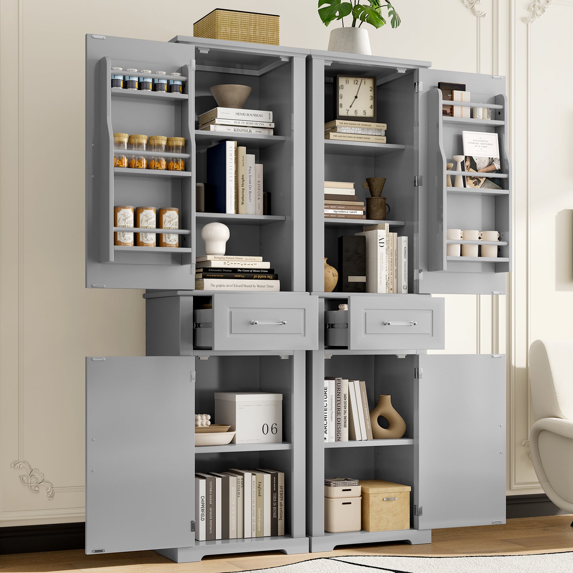 Tall Storage Cabinet with Four Doors Adjustable Shelf Door Rack MDF Painted Finish Grey