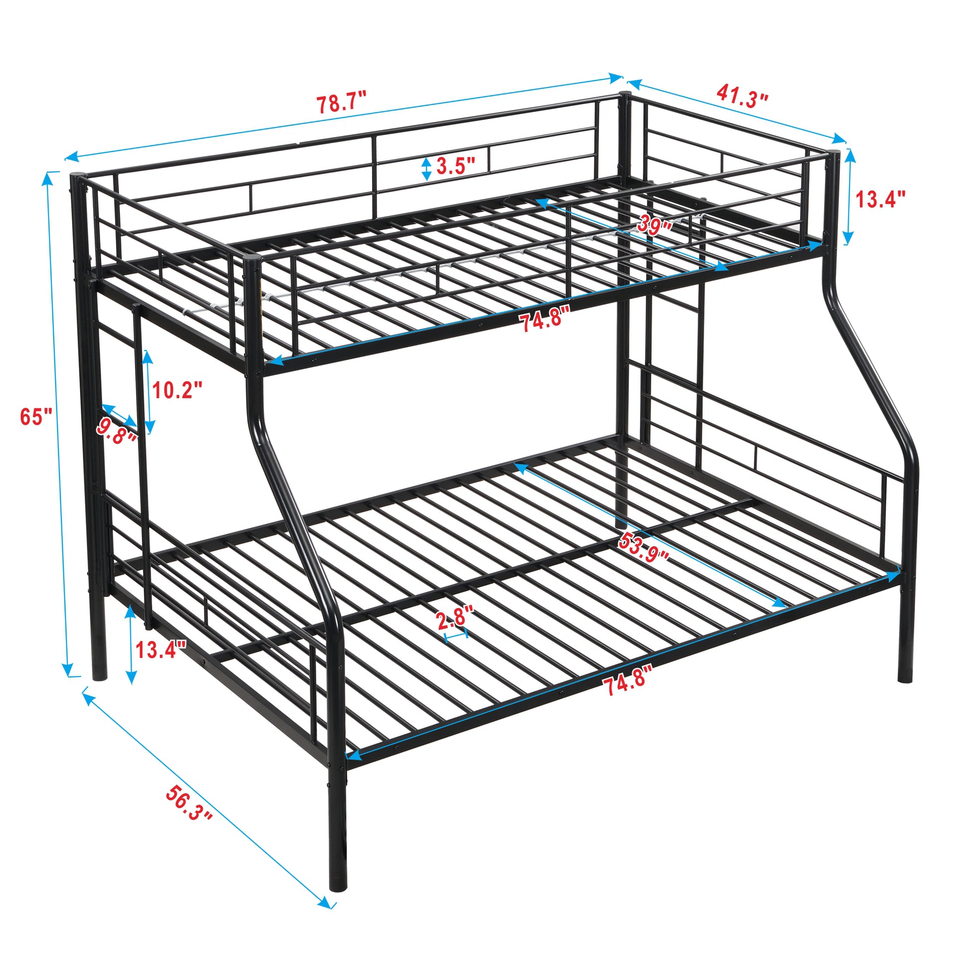 This twin-over-full metal bunk bed brings modern style and comfort to any bedroom while maximizing space. Designed as a non-convertible stacked-only bunk, it’s ideal for shared rooms, dorms, or guest spaces.