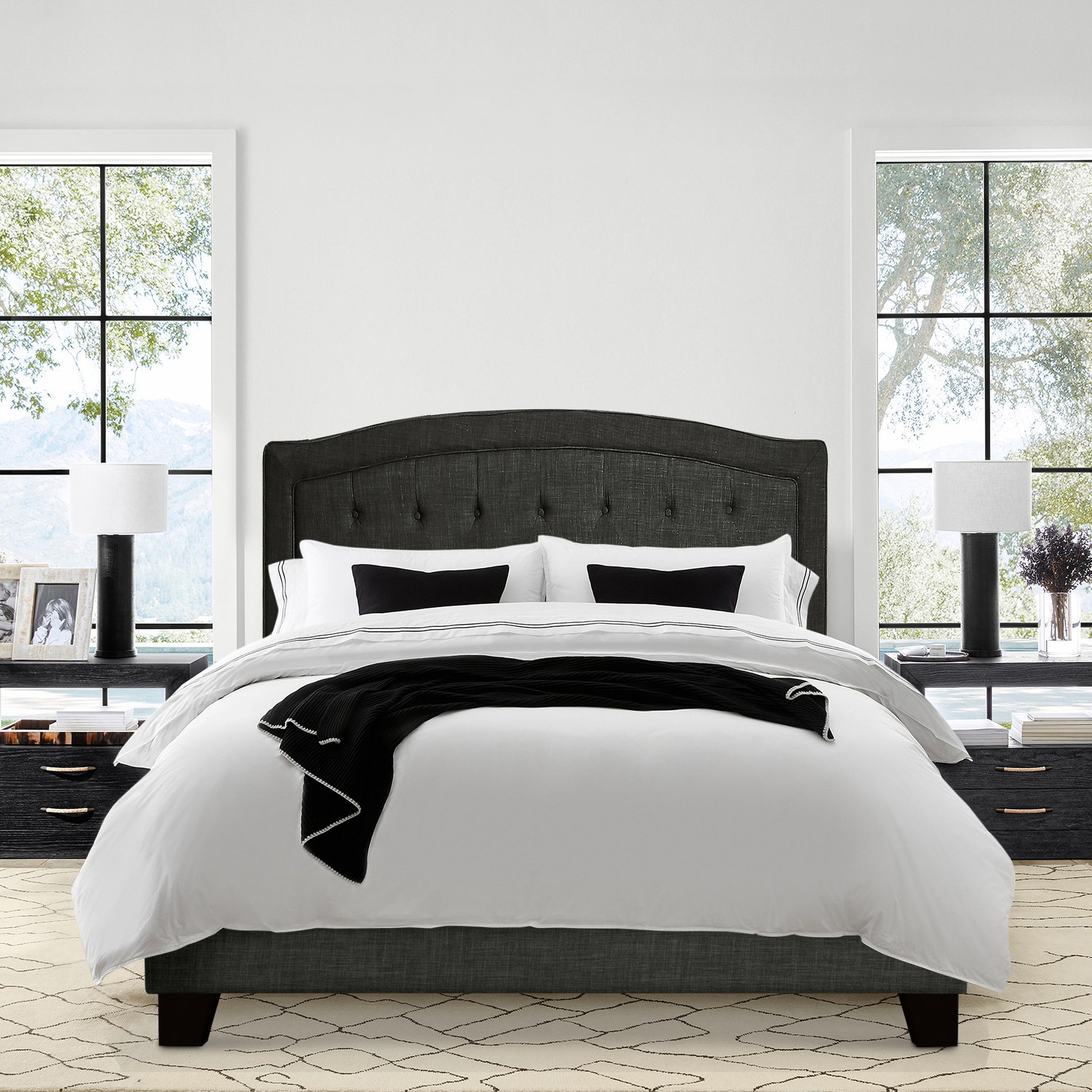 Upholstered Bed with Curved Button Tufted Headboard Modern Platform Bed Frame Solid Wood Structure