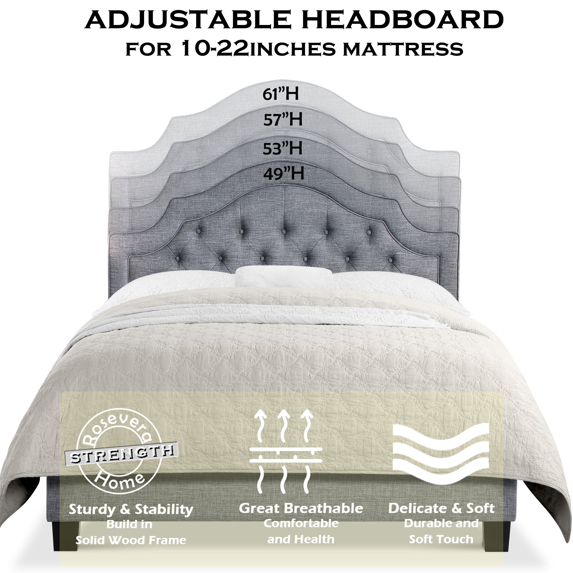 Upholstered Bed with Curved Headboard Button Tufted Bed Frame with Reinforced Structure and High-Density Padding