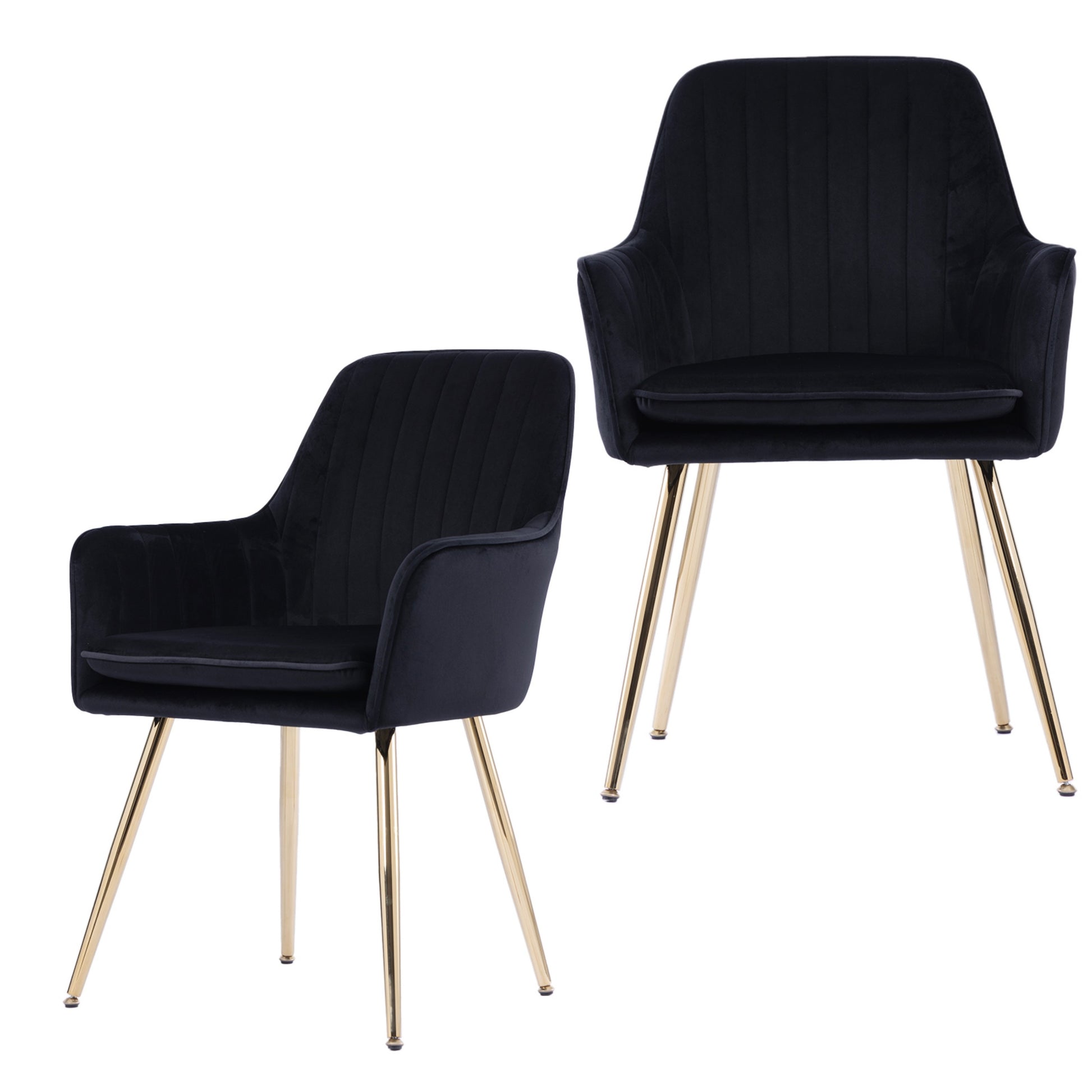 Velvet & Faux Leather Mid-Back Dining Chairs with Gold Plated Legs (Set of 2) Black