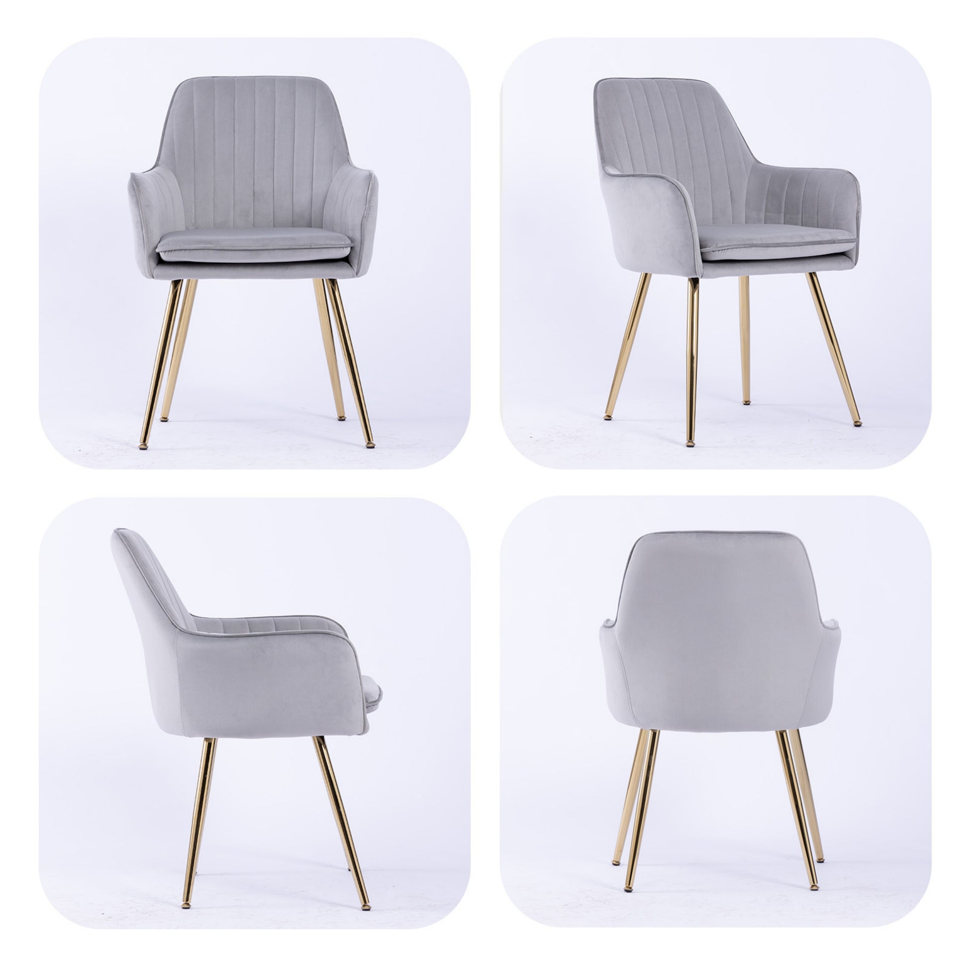 Velvet & Faux Leather Mid-Back Dining Chairs with Gold Plated Legs (Set of 2) Grey