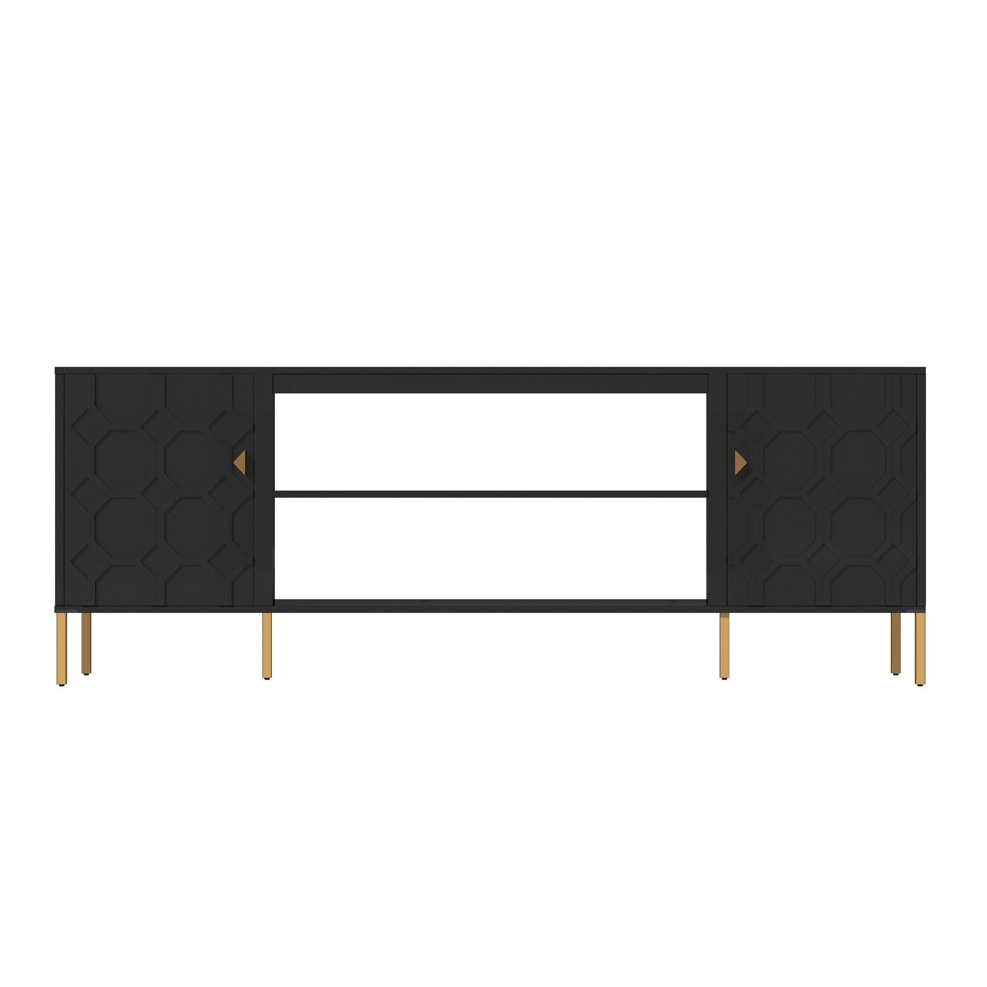 This is a multifunctional TV stand. Cabinets on both sides provide ample storage space.The classic high-light honeycomb with gold legs design looks elegant and fashionable You can set up a TV, store a variety of electronics and daily necessities, and give your living room a new look.