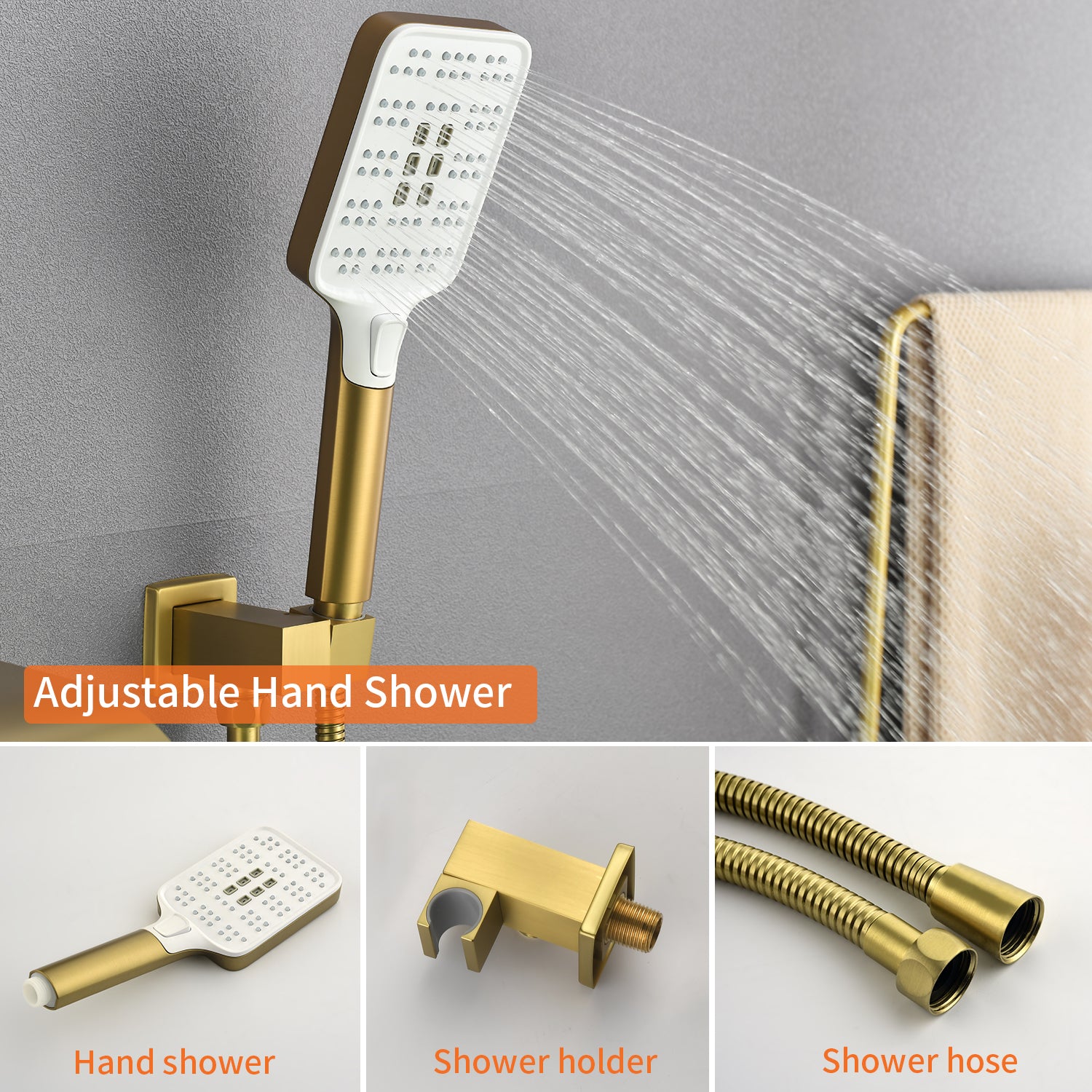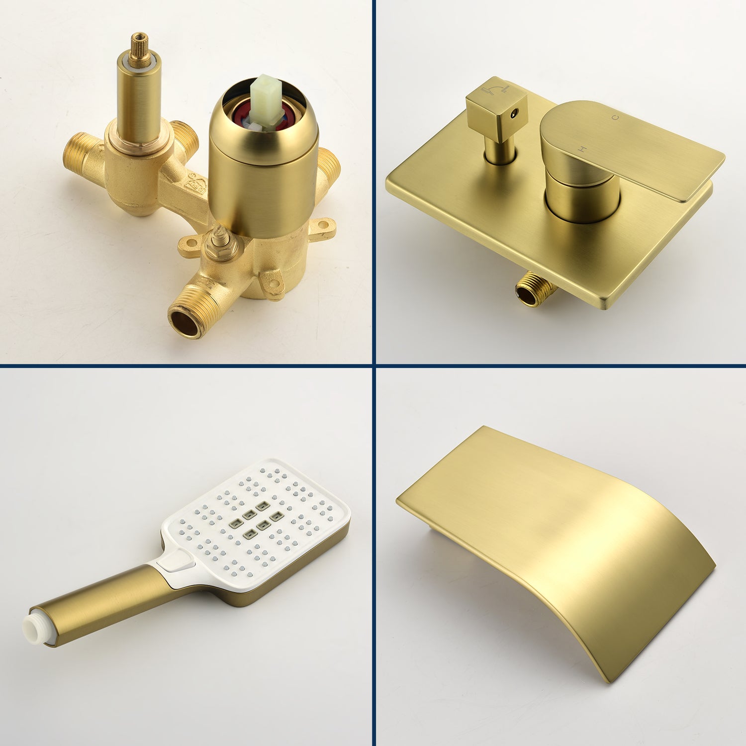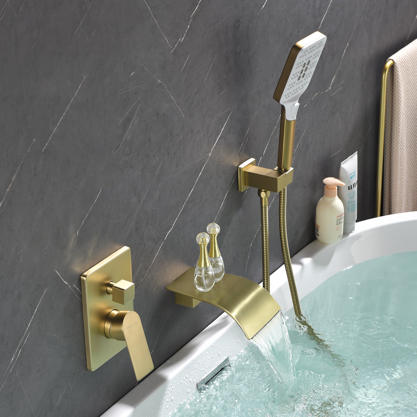 Wall Mount Single Handle 3 Spray Tub and Shower Faucet with Handheld Shower Head in Brushed Gold Valve Included
