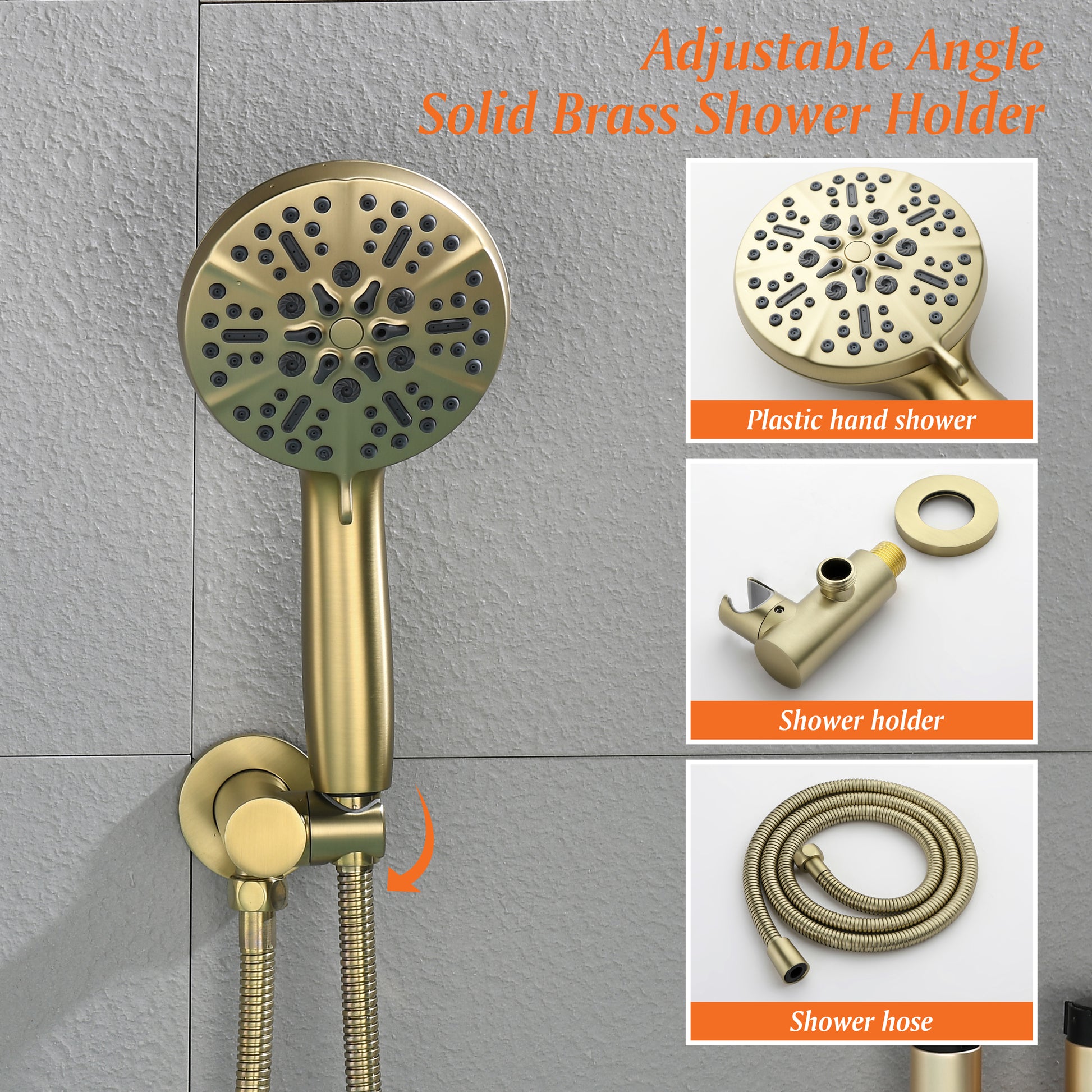 Wall Mount Single Handle 7 Spray Tub and Shower Faucet with Handheld Shower Head in Brushed Gold Valve Included