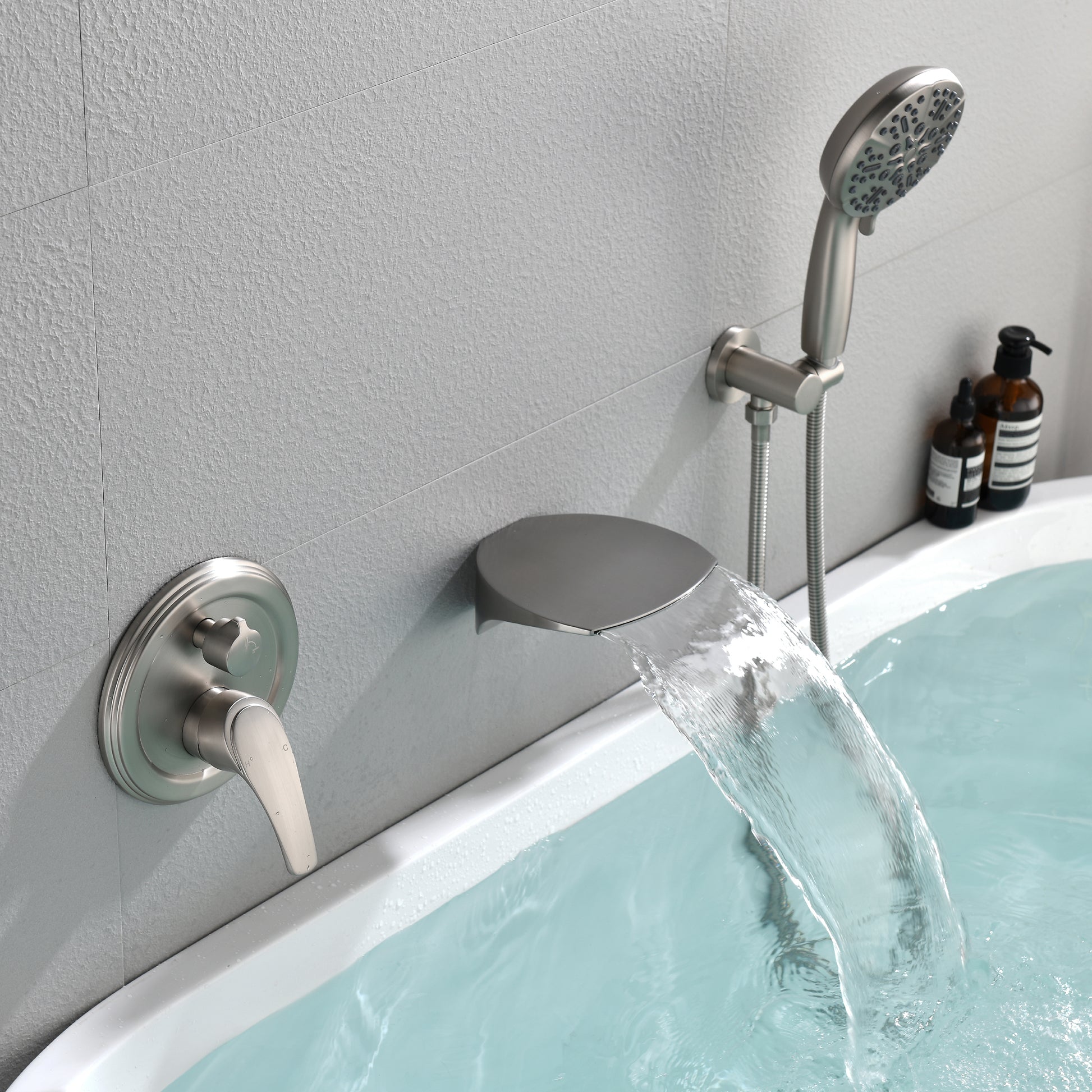 Wall Mount Single Handle 7 Spray Tub and Shower Faucet with Handheld Shower Head in Brushed Nickel Valve Included