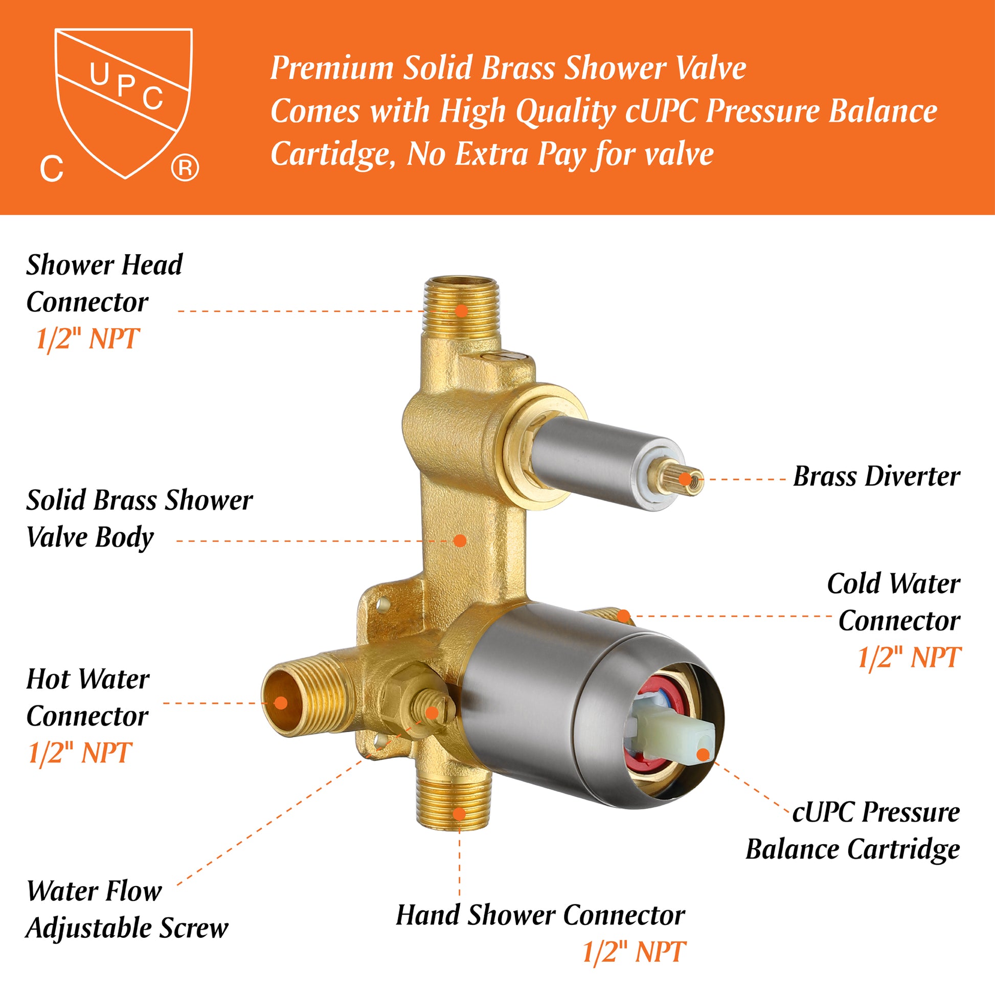 cUPC Certified and Anti scald advanced pressure balance ceramic disc cartridge with cUPC certification protects against scalding from sudden hot or cold water changes
