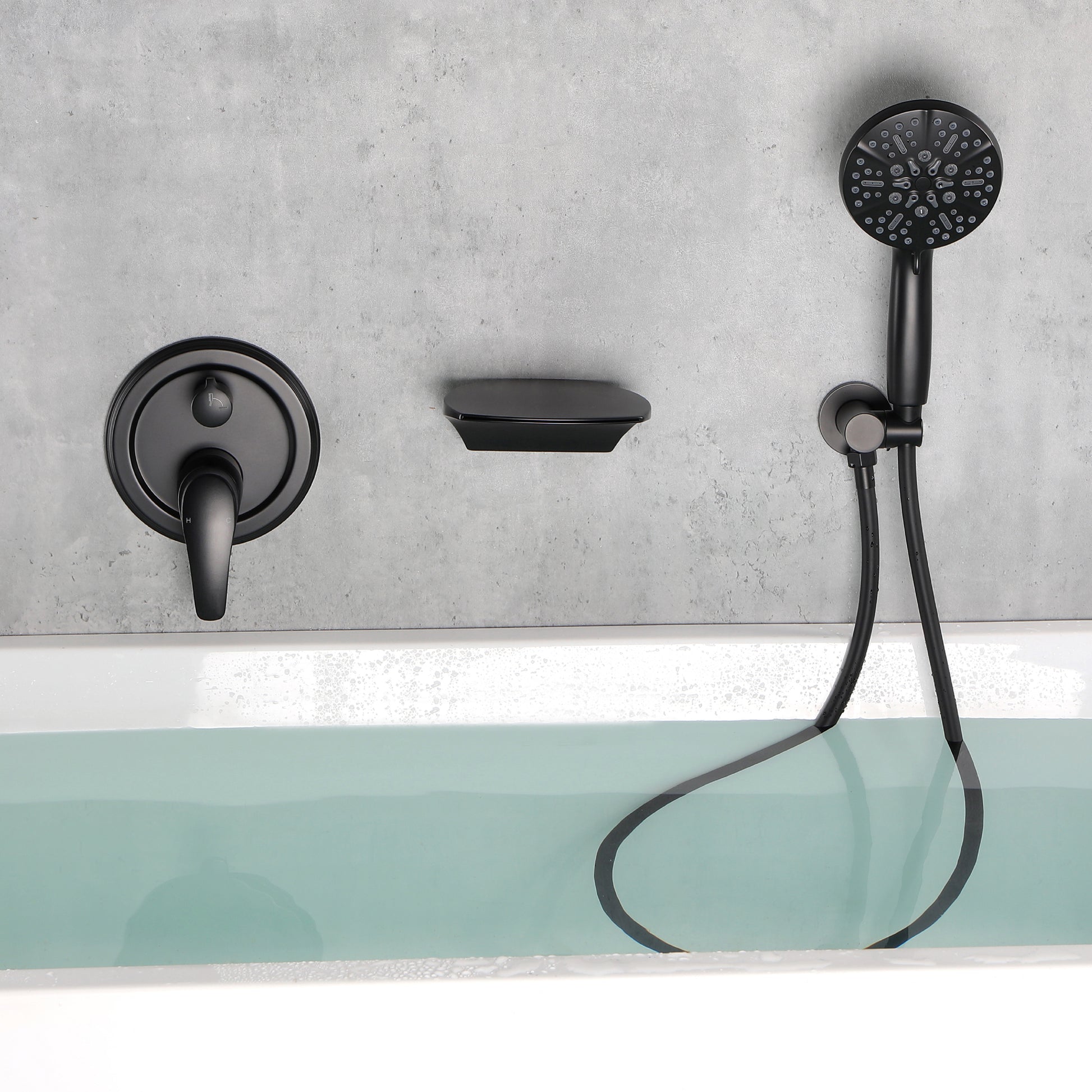 Wall Mount Single Handle 7 Spray Tub and Shower Faucet with Handheld Shower Head in Matte Black Valve Included