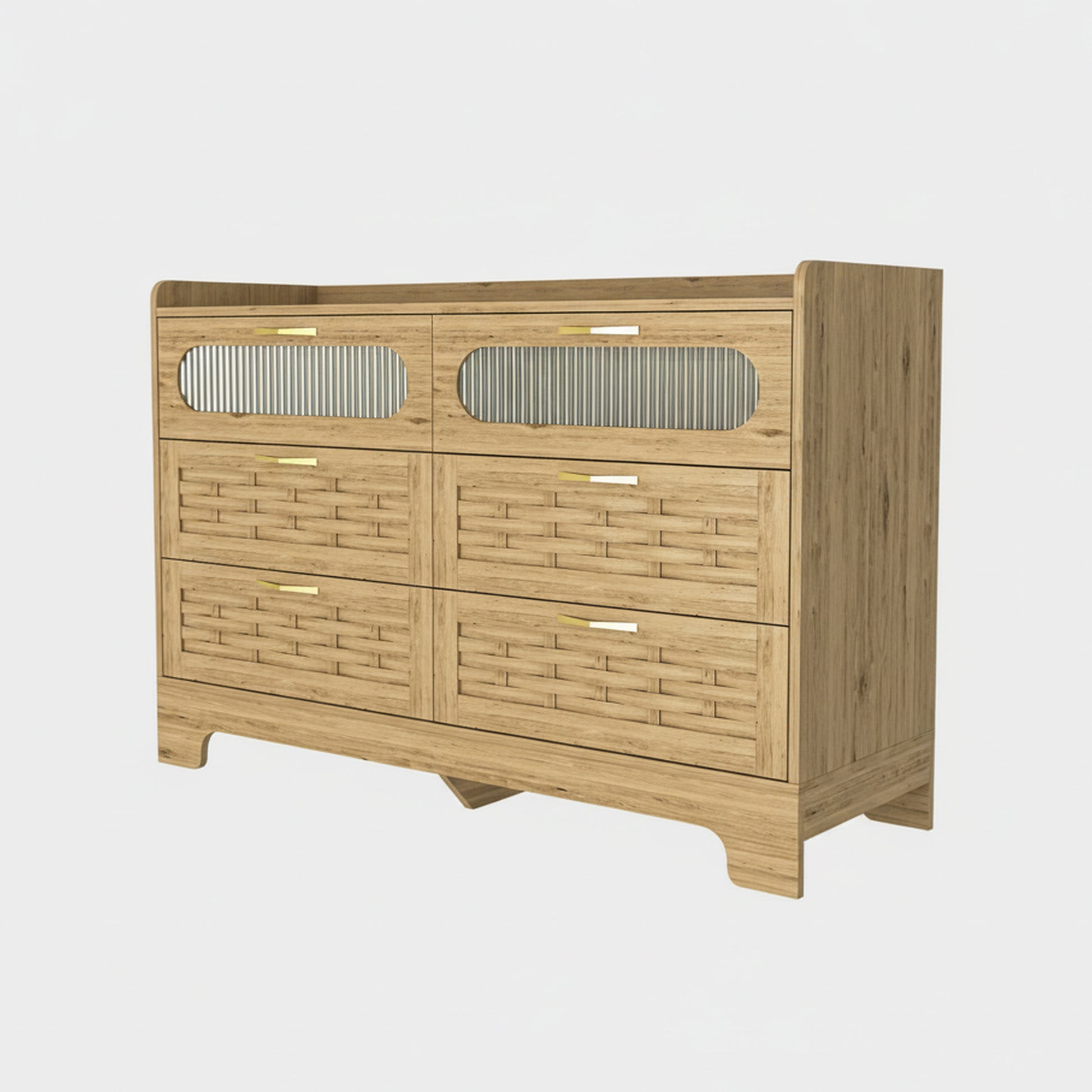 This wood 6 drawer dresser provides ample storage while fitting easily into bedrooms, living rooms, nurseries, hallways, and other compact areas. Built with scratch resistant and moisture resistant MDF boards, it offers durability for long term everyday use. The six wide drawers glide smoothly on ball bearing slides, allowing effortless access to clothing, accessories, toys, or household essentials. The spacious tabletop is perfect for holding keys, decor, photo frames, or plants to enhance your space. With its modern design, sturdy metal handles, and clean lines, this dresser serves as both a functional organizer and a stylish furniture piece.