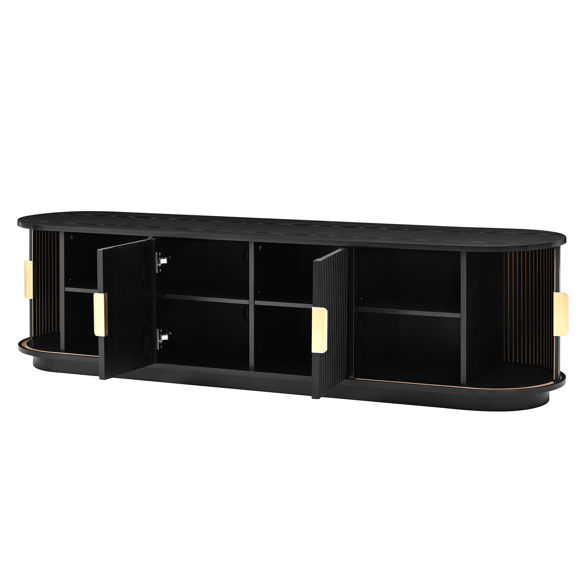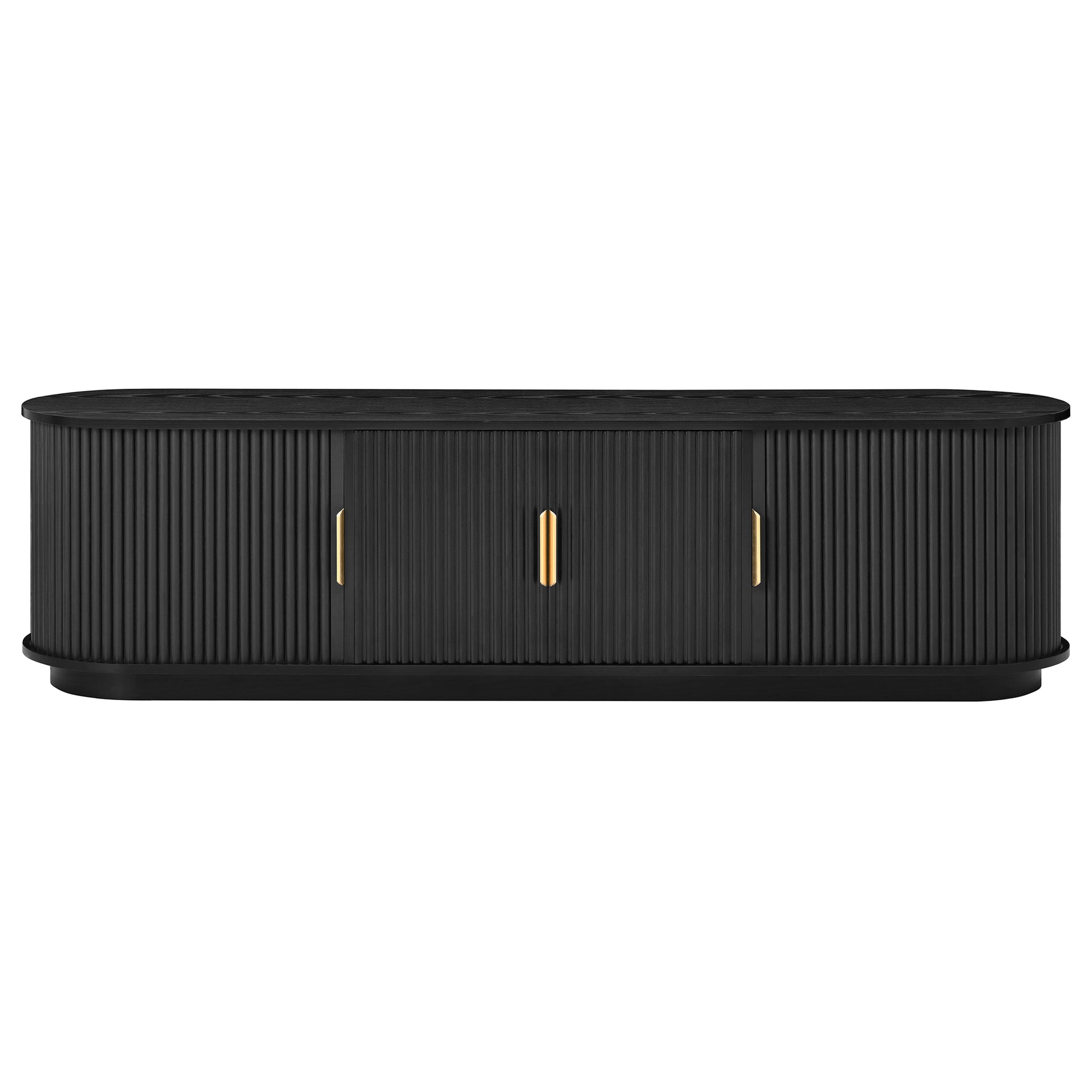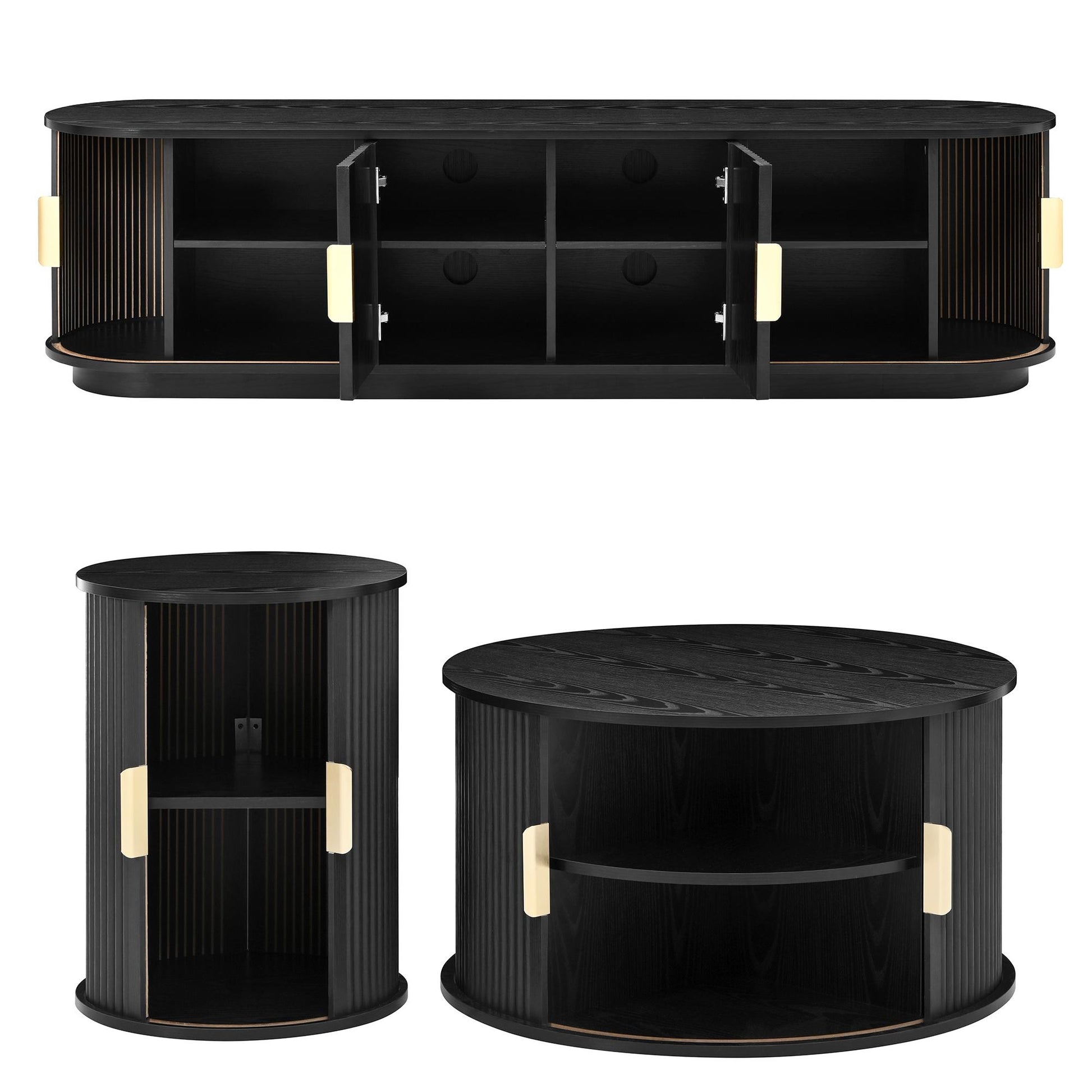 Wood TV Stand and Coffee Table Set with Fluted Sliding Doors for TVs up to 75 Inch Golden Handles Black