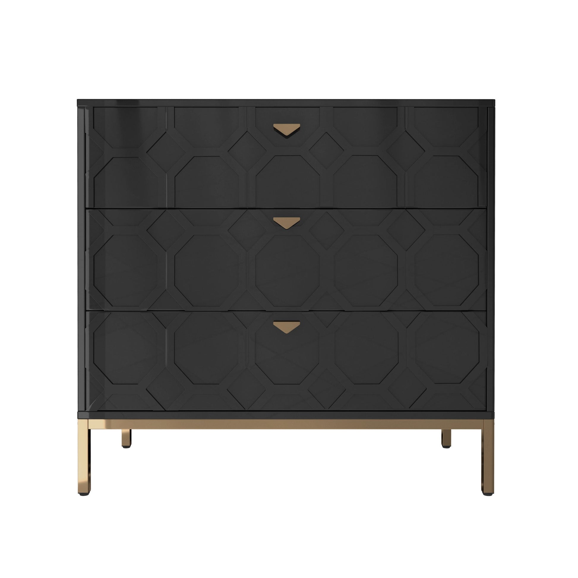 Upgrade your bedroom with this Clihome Storage Cabinet Table. These modern Storage Cabinet with metal legs are made of MDF, offering durability and longevity. The warm look of this Storage Cabinet elevates your decor, while the functional 3-drawer design ensures ample storage space.