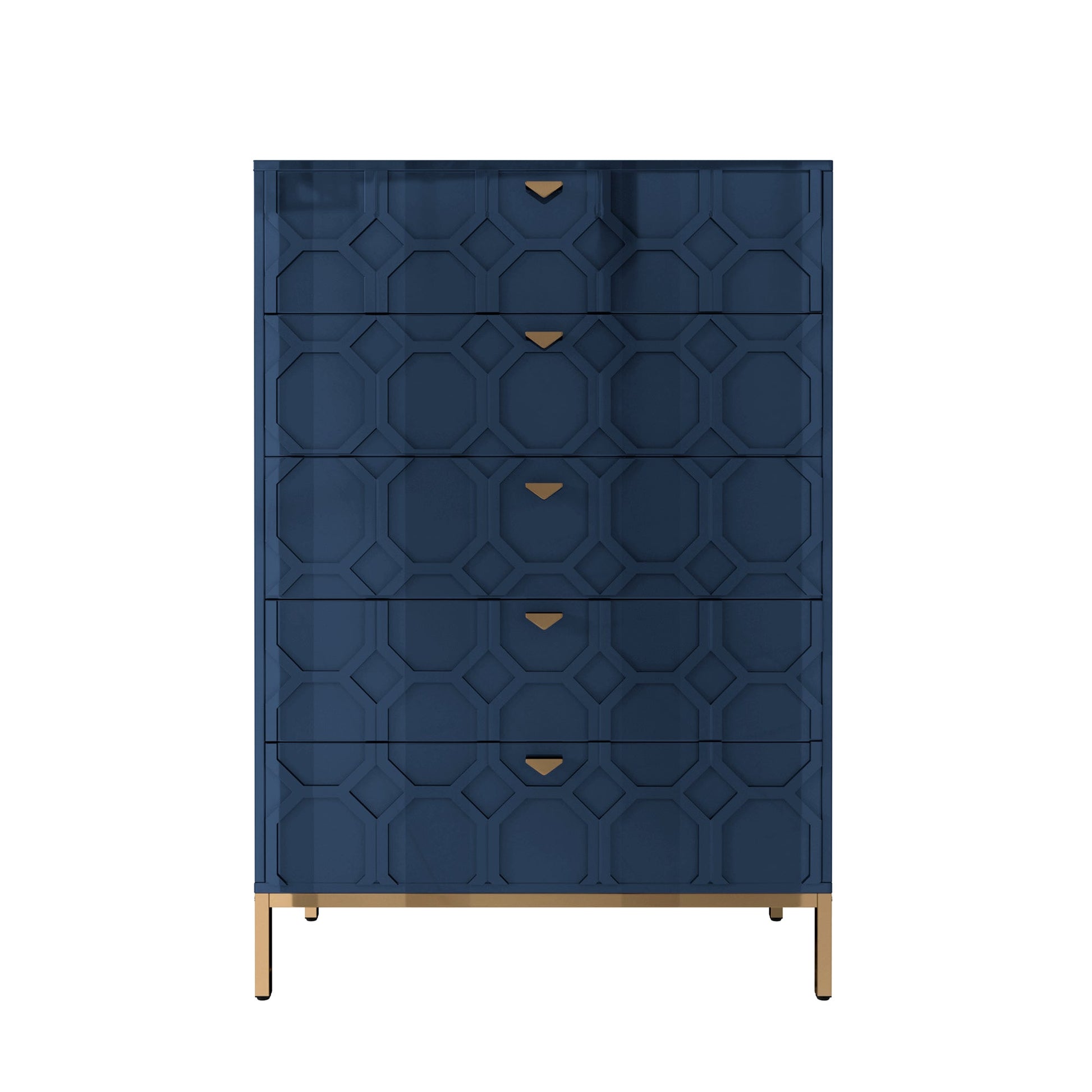 Upgrade your bedroom with this Clihome Storage Cabinet Table. These modern Storage Cabinet with metal legs are made of MDF, offering durability and longevity. The warm look of this Storage Cabinet elevates your decor, while the functional 5-drawer design ensures ample storage space.
