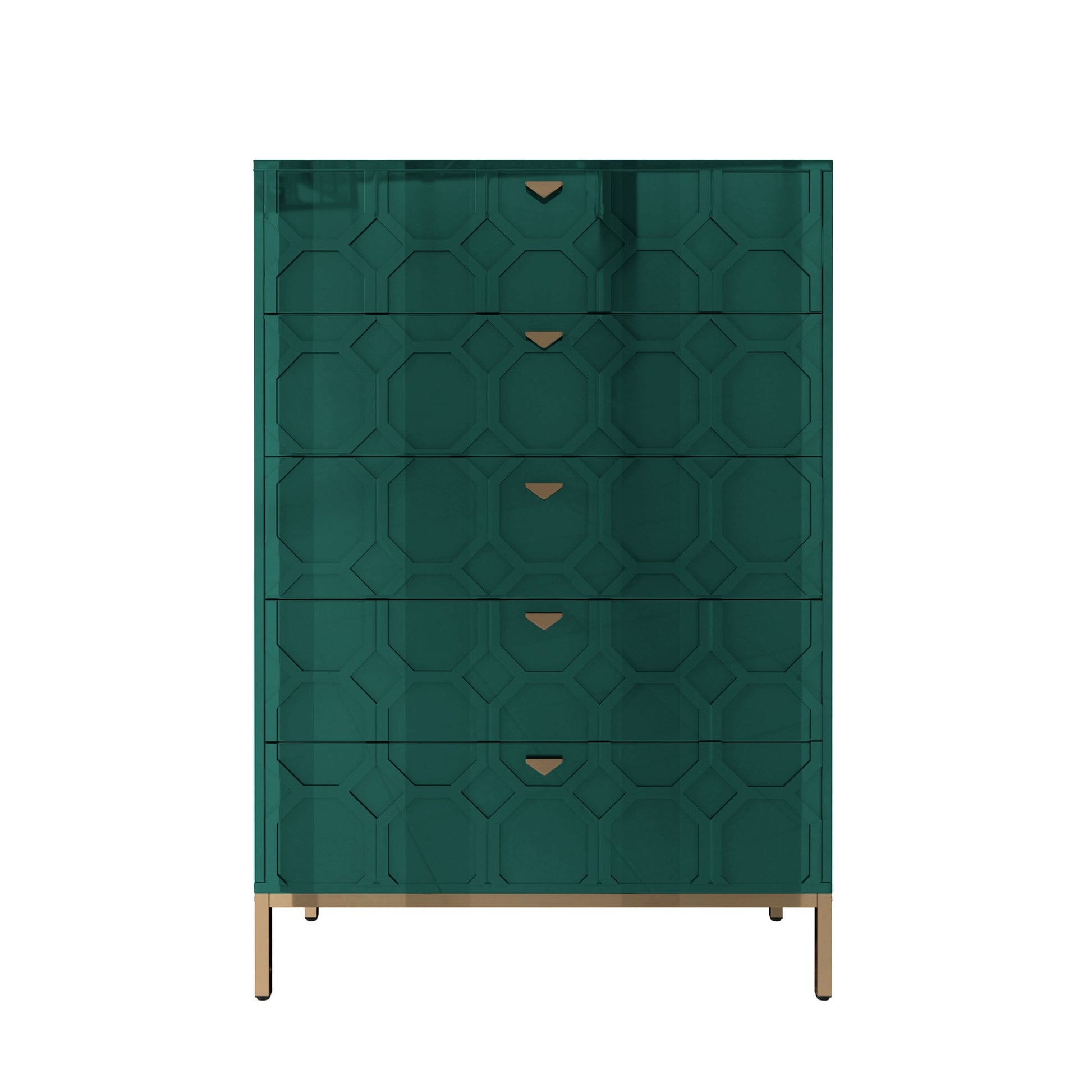 Upgrade your bedroom with this Clihome Storage Cabinet Table. These modern Storage Cabinet with metal legs are made of MDF, offering durability and longevity. The warm look of this Storage Cabinet elevates your decor, while the functional 5-drawer design ensures ample storage space.